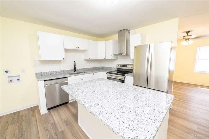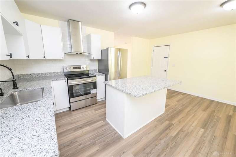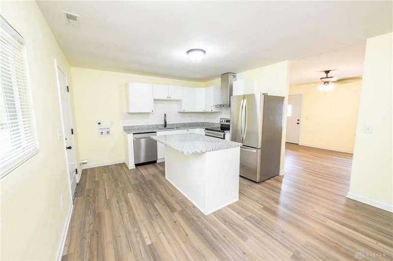 This beautifully updated 3-bedroom, 1-bath home with a 1-car garage is move-in ready and full of modern upgrades. Step inside to find fresh paint and new flooring throughout, creating a bright and inviting atmosphere. The remodeled kitchen features an island with granite countertops and brand-new stainless steel appliances, perfect for both cooking and entertaining. The bathroom has also been fully renovated with stylish finishes.Enjoy peace of mind with a new HVAC system, along with a freshly poured driveway. Every detail has been thoughtfully updated, making this home a rare find in the Trotwood School District.