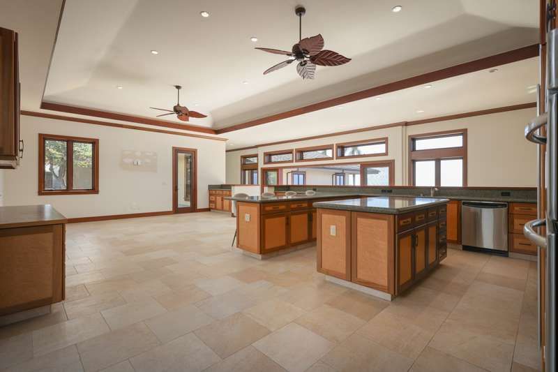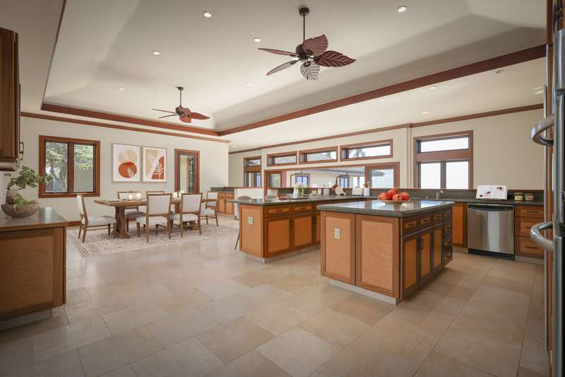 The kitchen features koa with maple inlay cabinetry, granite countertops, a gas cooktop, and GE Signature appliances, all while overlooking the breathtaking views from the family room. This property isn't just a home; it's a luxurious lifestyle.