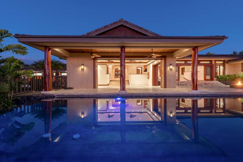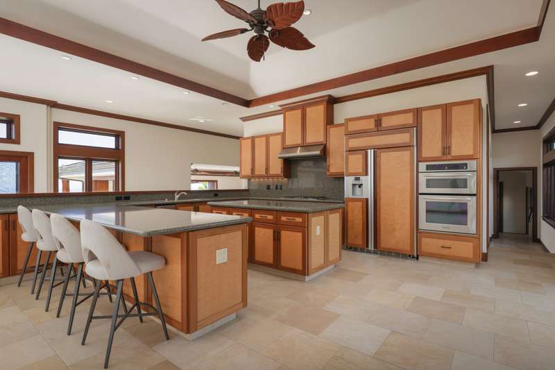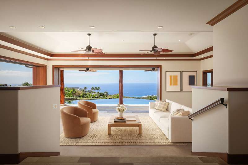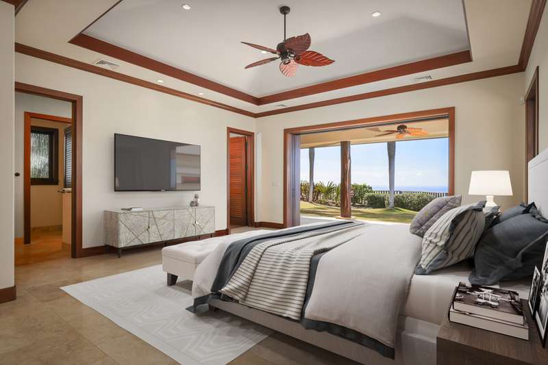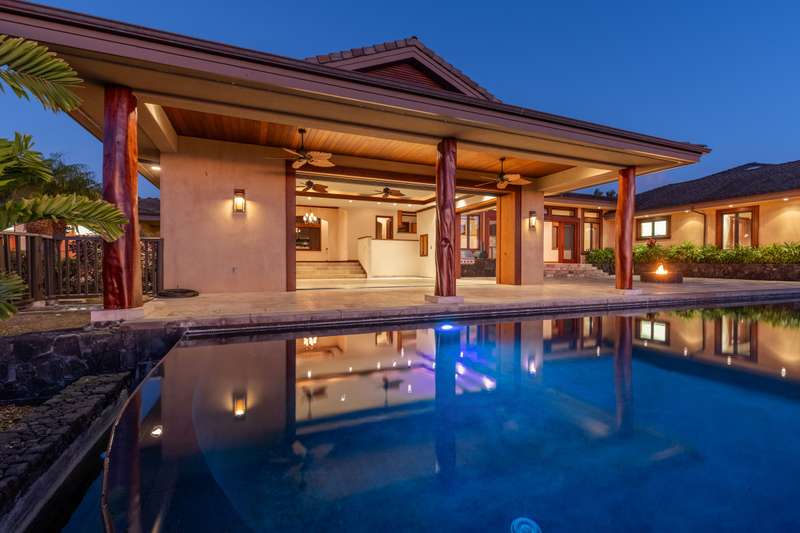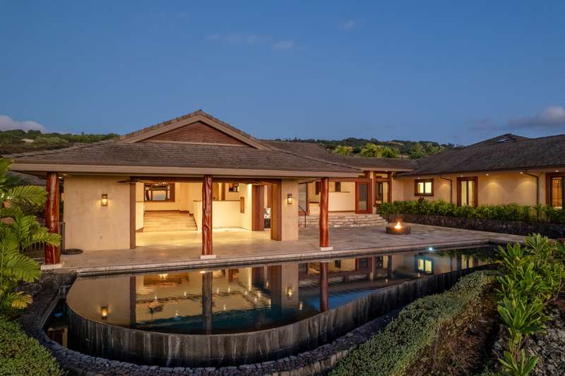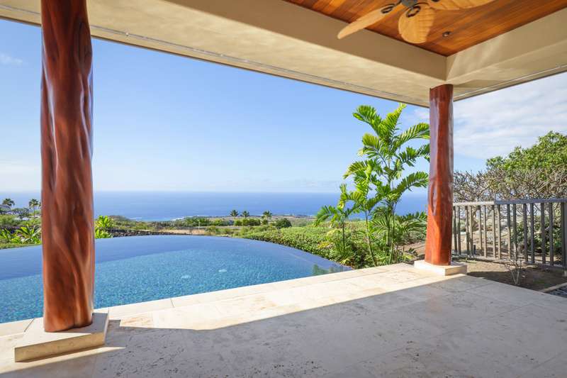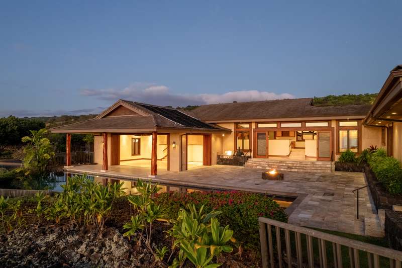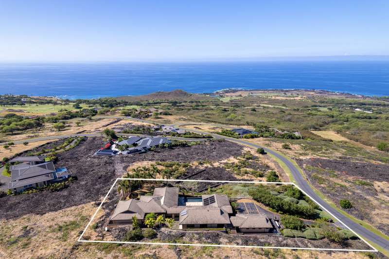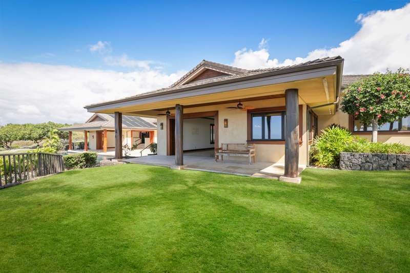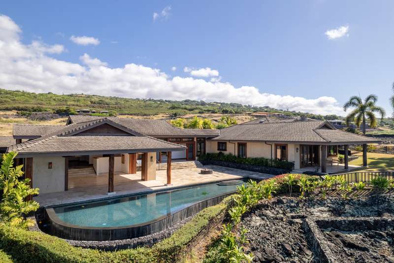 Discover Hawaii living in the exclusive, private gated golf club community of Hokuli’a on the Big Island of Hawaii. This custom estate spans over 5,000 square feet with an additional 2,300+ square feet of lanais, offering 180-degree panoramic views of the ocean, shoreline, and golf course from nearly every room. The open floor plan is designed to embrace Hawaii's climate, featuring 4- bedrooms and 4.5-bathrooms in a layout that perfectly balances grandeur with comfort.