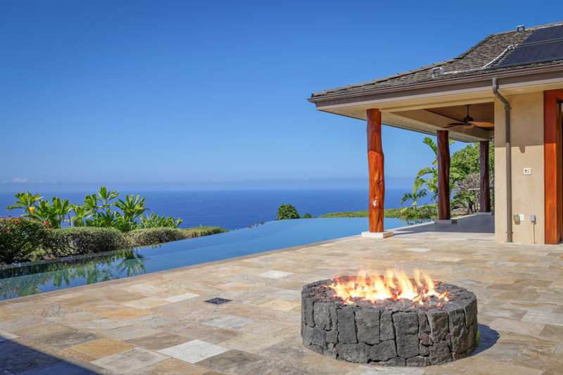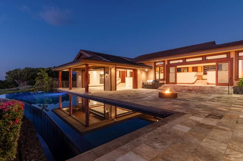 Wake up to unobstructed ocean views from the master suite's private lanai. Each guest suite offers privacy for guests and features custom built-in cabinetry and desks. The great room, with fully pocketing doors, opens to a vast lanai where an infinity edge lap pool, outdoor kitchen, and fire pit invite you to enjoy spectacular sunsets and entertain in style.