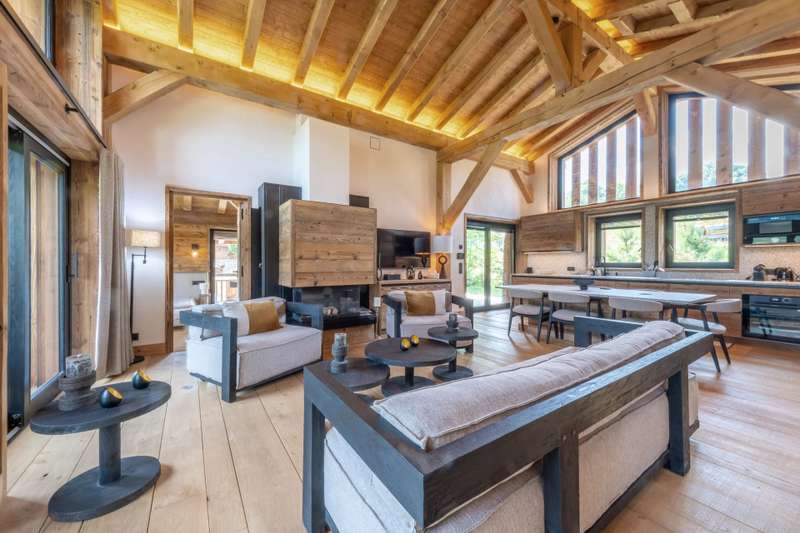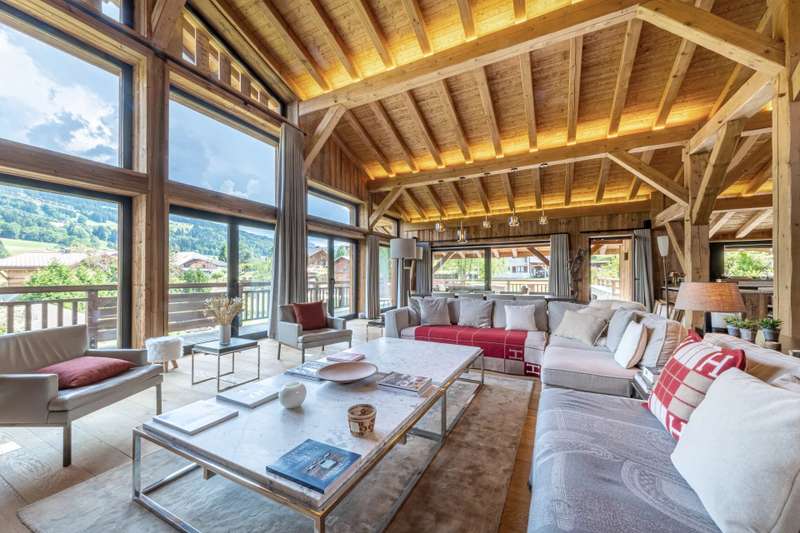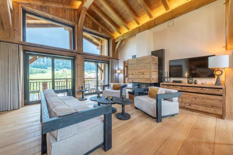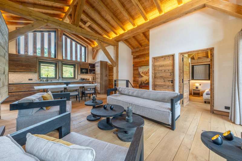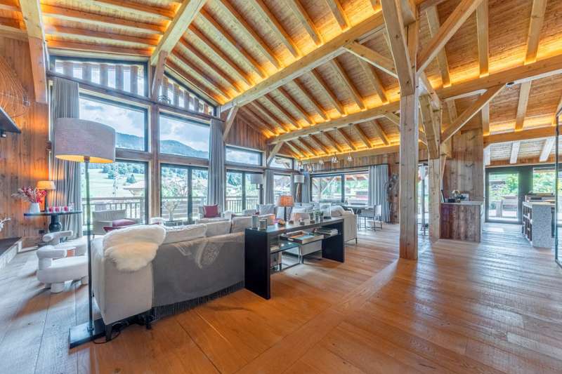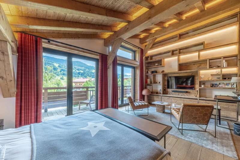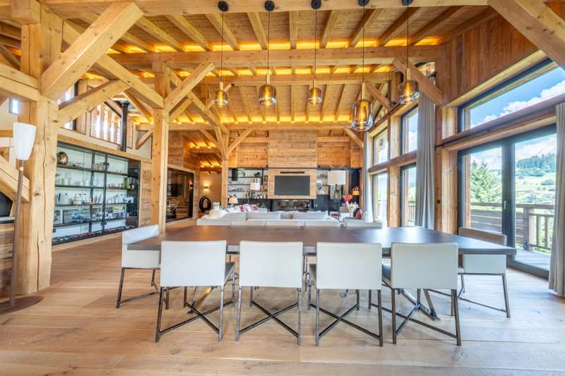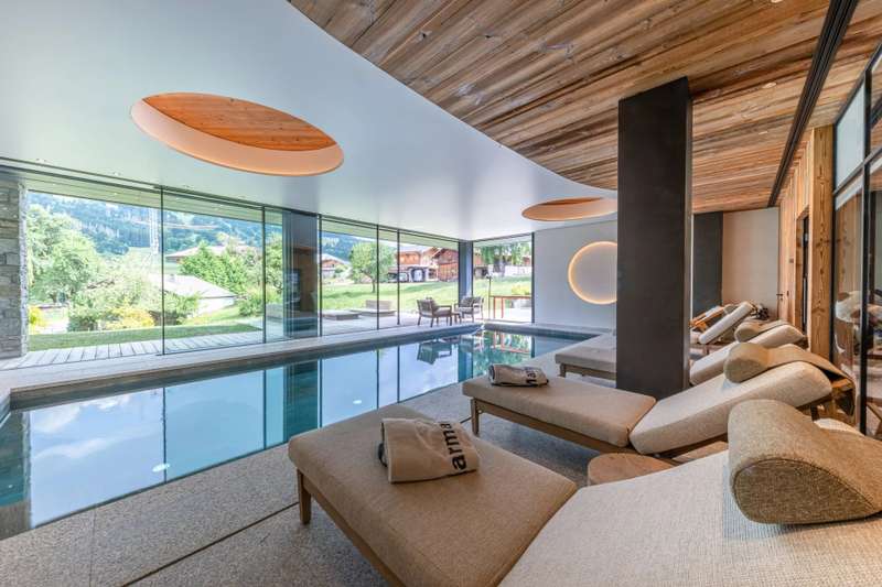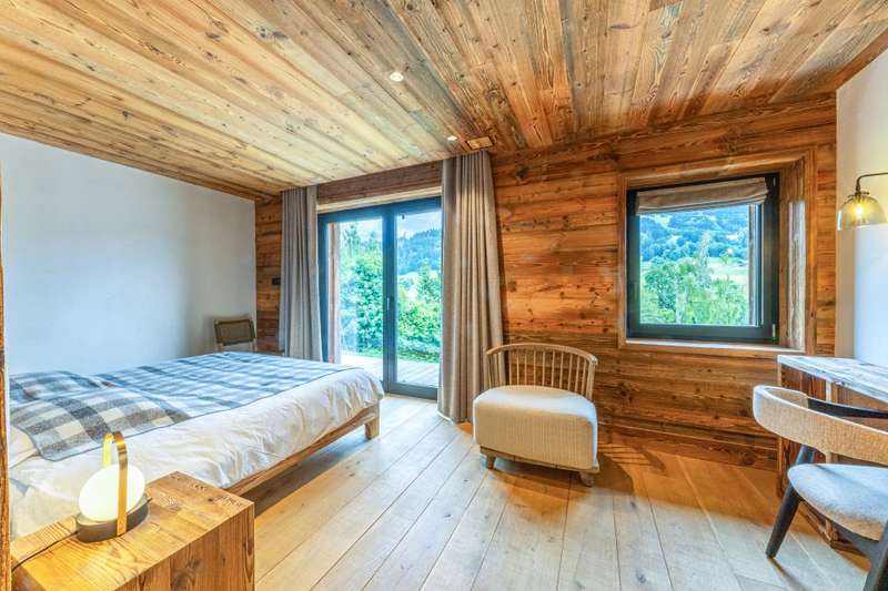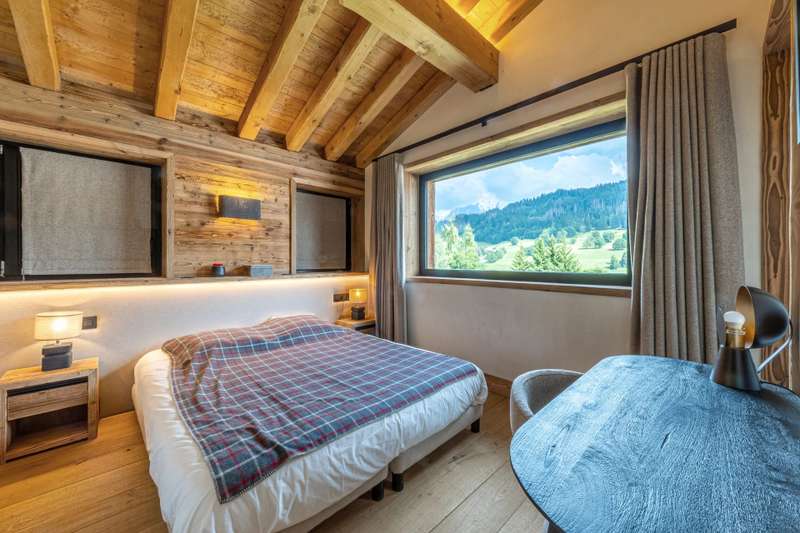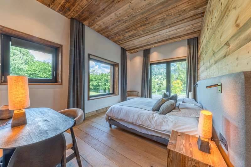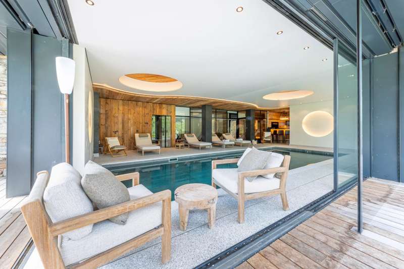 Just minutes from Megève, this property stands out for its refined finishes and exceptional view of Mont Blanc. Built between 2019 and 2023, the estate consists of two separate chalets with a total surface area of over 900 m² (including nearly 590 m² of living space), set on a landscaped plot of more than 2,000 m² facing south-east. From the sun-drenched terraces, the view of the mountains is truly breathtaking. The materials have been selected with the utmost care: Mont Blanc granite, solid oak, bespoke finishes. Each space is thoughtfully designed, striking the right balance between comfort and elegance. The main chalet is arranged around a vast living area with fireplace, a kitchen designed by Michel Rostang, three suites, a study with cigar lounge and wine cellar, an elevator, and a full wellness area: indoor swimming pool opening onto the terrace, hammam, and fitness room. The guest chalet offers four suites with dressing rooms, bathrooms, a beautiful living area with fireplace and open kitchen, as well as access to the terrace. The amenities are in line with the overall standard of the property: ski room, garage for six vehicles, workshop, and heated driveway.