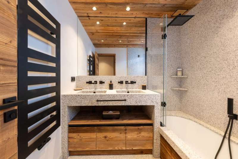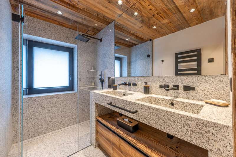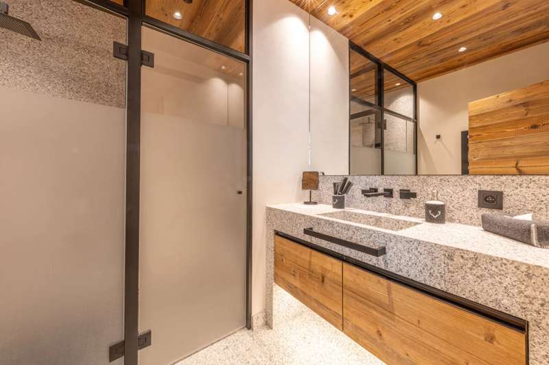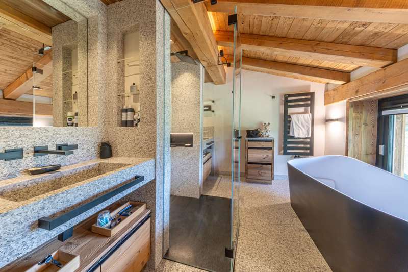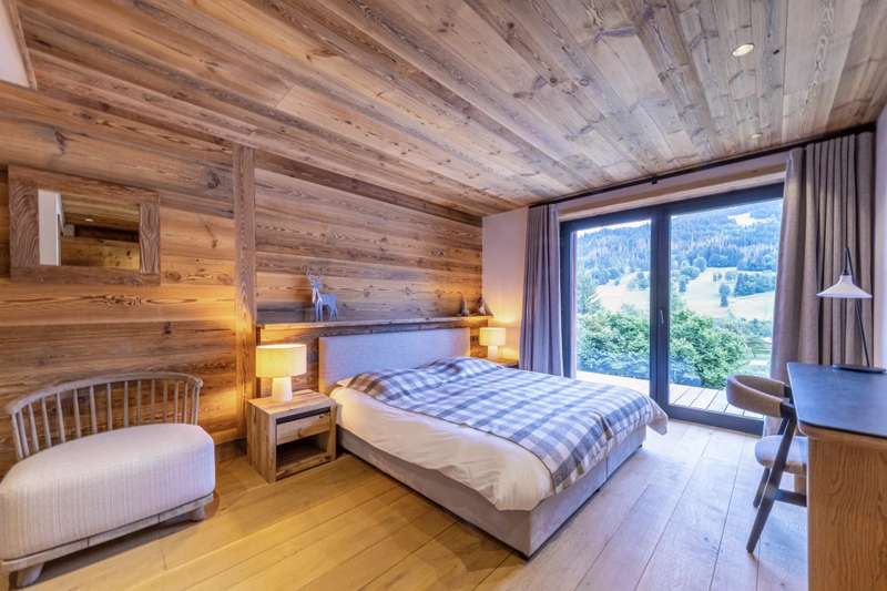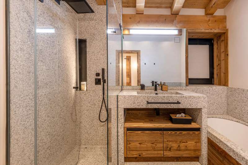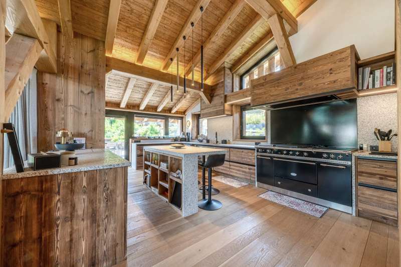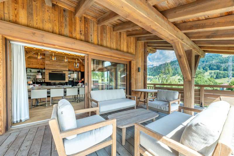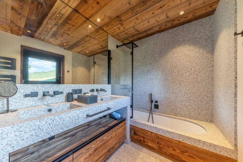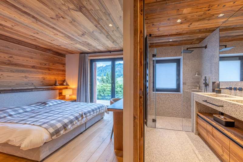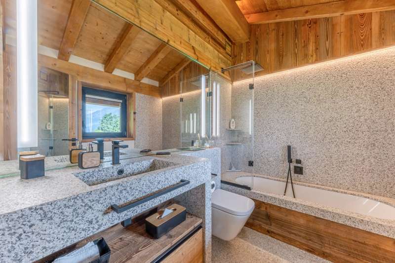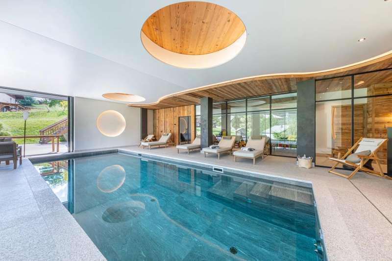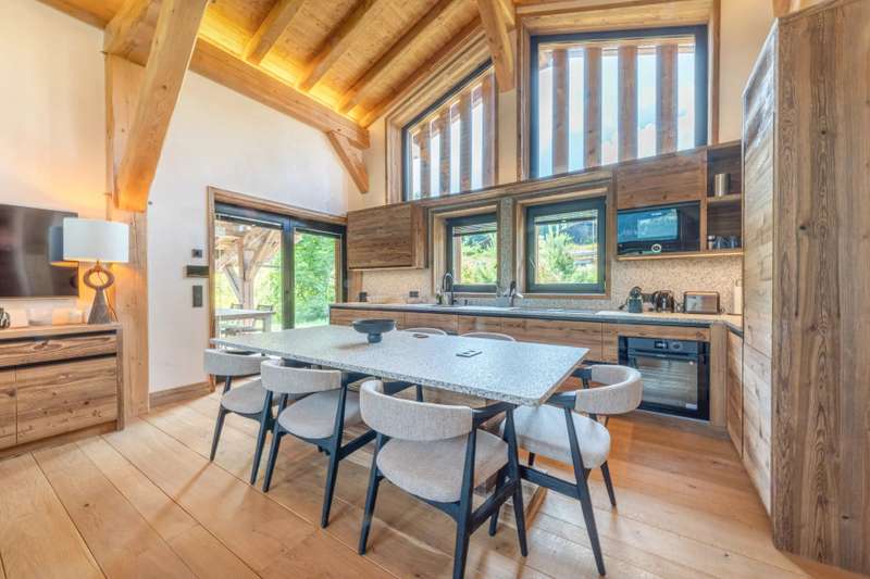 Just minutes from Megève, this property stands out for its refined finishes and exceptional view of Mont Blanc. Built between 2019 and 2023, the estate consists of two separate chalets with a total surface area of over 900 m² (including nearly 590 m² of living space), set on a landscaped plot of more than 2,000 m² facing south-east. From the sun-drenched terraces, the view of the mountains is truly breathtaking. The materials have been selected with the utmost care: Mont Blanc granite, solid oak, bespoke finishes. Each space is thoughtfully designed, striking the right balance between comfort and elegance. The main chalet is arranged around a vast living area with fireplace, a kitchen designed by Michel Rostang, three suites, a study with cigar lounge and wine cellar, an elevator, and a full wellness area: indoor swimming pool opening onto the terrace, hammam, and fitness room. The guest chalet offers four suites with dressing rooms, bathrooms, a beautiful living area with fireplace and open kitchen, as well as access to the terrace. The amenities are in line with the overall standard of the property: ski room, garage for six vehicles, workshop, and heated driveway.