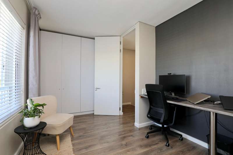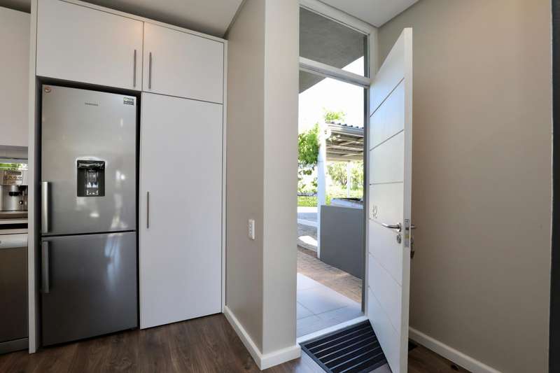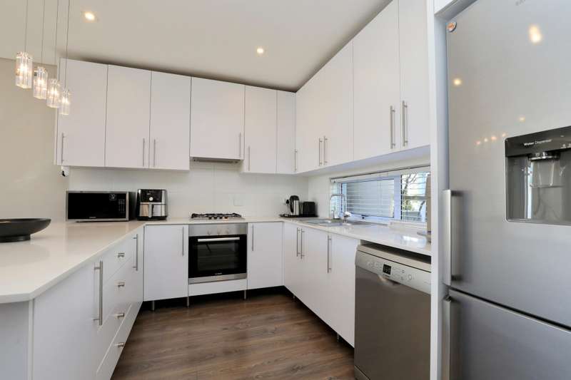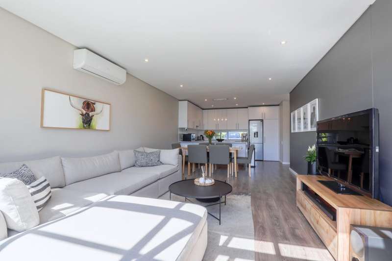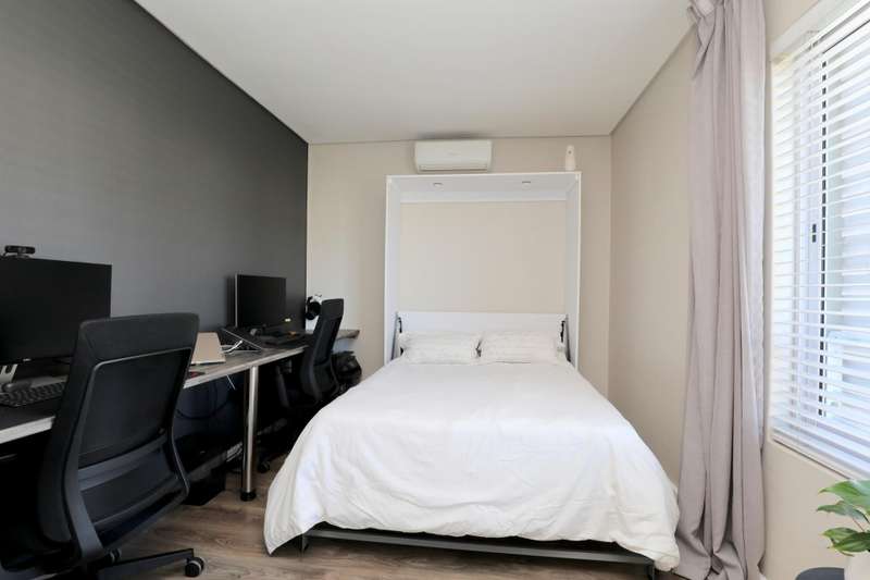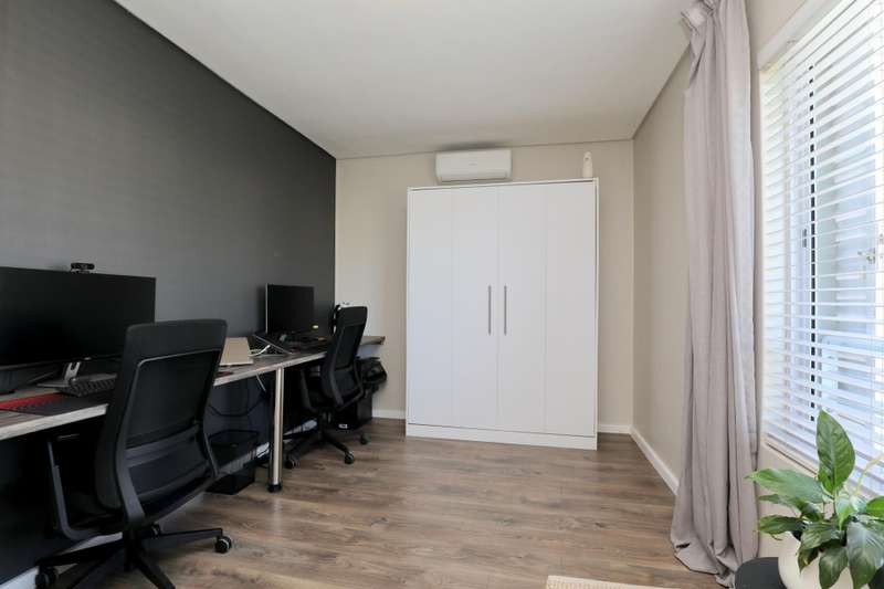 New Release Exclusive mandate. This modern and neat duplex with plenty of natural light, in the sought-after Waterford complex at Somerset Lakes Estate offers stylish finishes and excellent value. Downstairs: Open Plan lounge, dining and kitchen area flows into a private low-maintenance garden. The renovated kitchen is fitted with Caesarstone countertops and plenty of cupboard space. The kitchen is plumbed for three appliances, with the washer and dryer concealed in a cupboard. Upstairs: The spacious main en-suite bedroom has North Western views. The second bedroom is fitted with a study shelf and has a built-in Murphy bed (Included in the sale) A full family bathroom is situated between the two bedrooms. Additional features: Lounge and both bedrooms fitted with aircons Fibre ready Two allocated covered parking bays A private storeroom 5kw inverter, battery and solar panels A water tank with pump Linen cupboard Pre-paid electricity Window blinds included A perfect modern and very neat unit ideal for first time buyers or as an investment property. Somerset Lakes estate provides 24 hours manned security with access control. It offers safe and tranquil surroundings and walking trails, perfect for modern family living. Call Davy Rainier for a viewing appointment