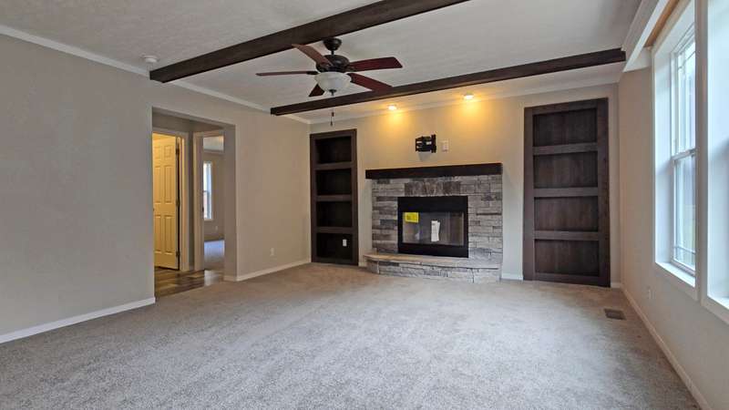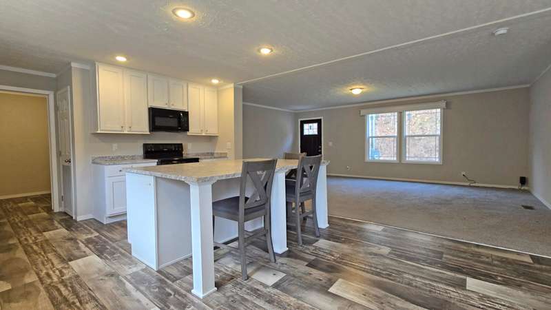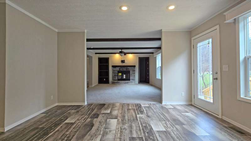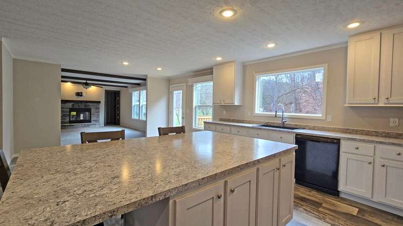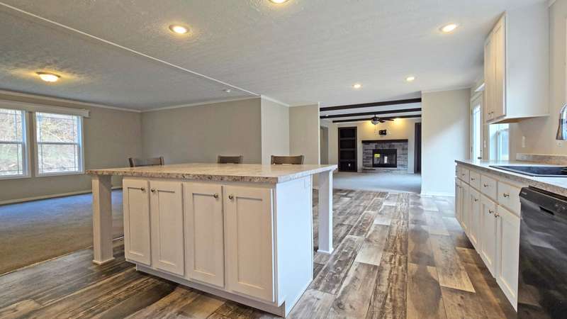Discover peaceful living in this charming 3-bedroom, 2-bath home, nestled on a private .47 acre lot surrounded by nature. The open floor plan offers a bright and spacious living room with a cozy stone fireplace, rustic beam accents, and a hidden storage area tucked behind the fireplaceperfect for keeping valuables or creating a fun secret space. The gourmet kitchen features white cabinetry, a large island, and sleek black appliances, ideal for gatherings and everyday living. Relax in the private master suite with its walk-in closet, dual sinks, soaking tub, and walk-in shower. Large windows bring in natural light, while wood-look flooring and plush carpets add warmth and style. Enjoy the serenity of country livingschedule your private tour today!