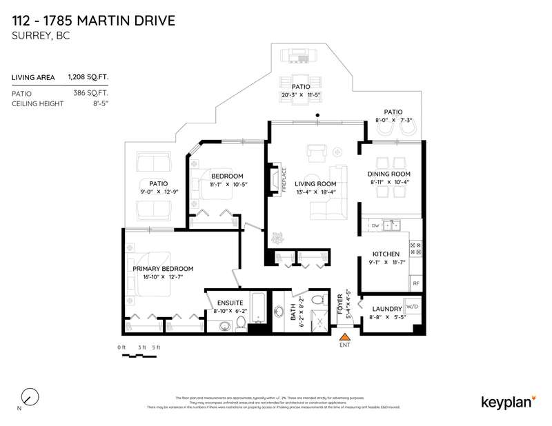 Discover Southwynd Living! This bright and inviting 2-bedroom, 2-bathroom condo offers 1,208 sq. ft. of comfortable ground-floor living plus an expansive 386 sq. ft. of private patio space. Located in a solid concrete building across from Semiahmoo Centre, this 55+ home features a great layout, cozy gas fireplace, walk-in laundry, plenty of storage and secure underground parking. Amenities include a gym, clubhouse, woodworking shop. Conveniently located just steps to trails, transit, shops, and medical. Just minutes to White Rock Beach and Hwy 99. Priced to move quickly—an excellent opportunity! Sorry, no pets. (Some photos virtually staged). OPEN HOUSE SAT 12 Noon - 2 PM