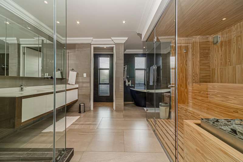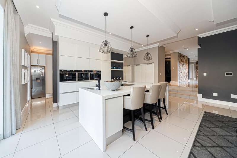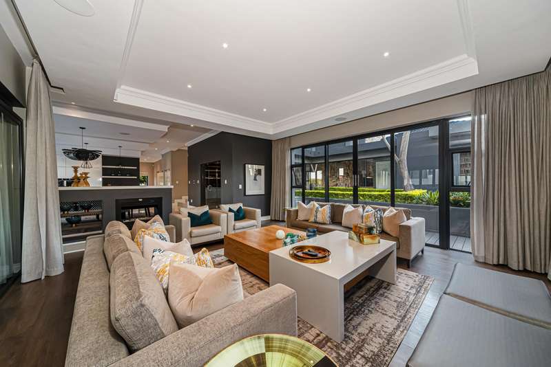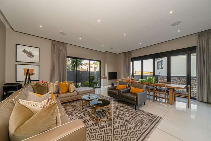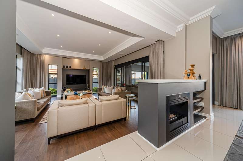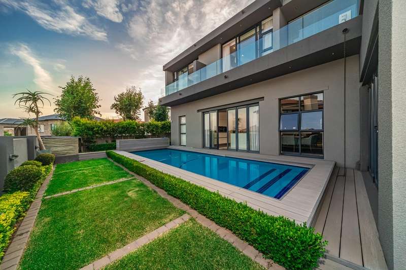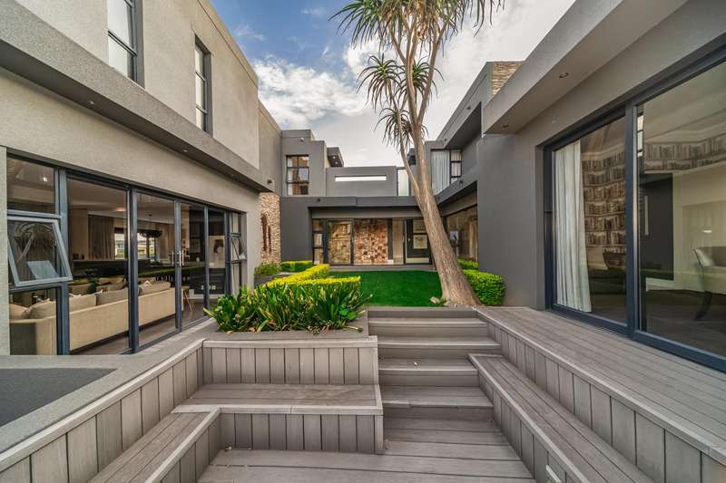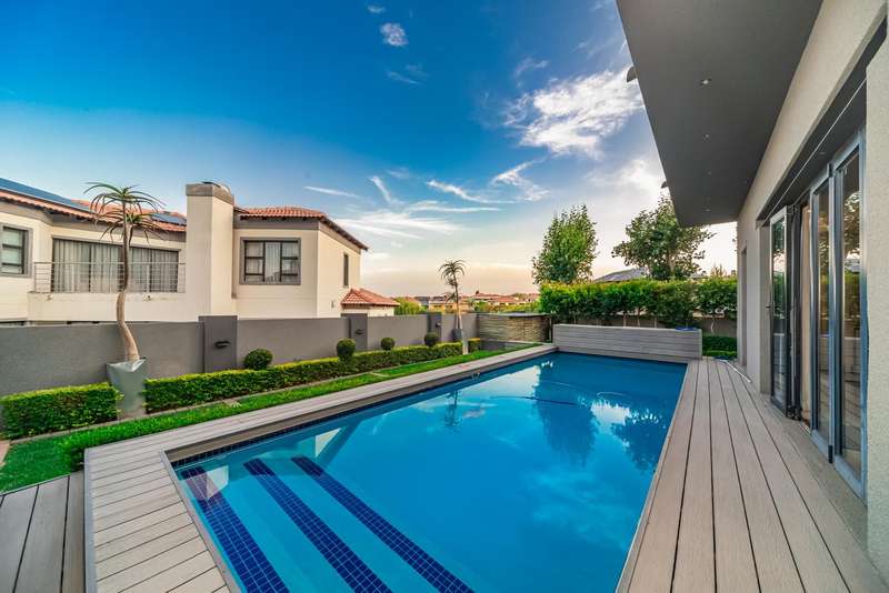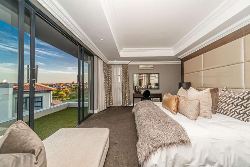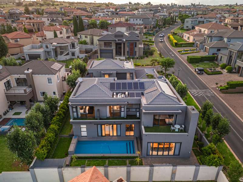 Exquisite 4-Bedroom Luxury Mansion in Blue Valley Golf Estate Step into unparalleled elegance with this fully furnished 4-bedroom masterpiece in the prestigious Blue Valley Golf Estate. Designed by renowned architect Leighton Clapton, whose works have graced the screens of Top Billing, this home is a harmonious blend of sophistication, luxury, and modern functionality. Upon entering, you?ÇÖre greeted by a grand reception area illuminated by crisp lighting and flowing seamlessly into an enchanting garden courtyard and atrium accessible from all sides of the home. The ground floor boasts open-plan living spaces adorned with porcelain tiles and spotlights, featuring retractable glass doors that open to a heated decked pool?Çöa dream for entertainers. The state-of-the-art kitchen is a showstopper, equipped with premium Smeg and Siemens appliances, marble countertops, and both functional and display kitchens. Highlights include a hidden pantry, a wine cellar with perfect ambiance, and a lounge overlooking a private garden with a built-in braai and tranquil water features. Upstairs, four en-suite bedrooms provide a haven of comfort, each uniquely designed. The luxurious master suite features a private balcony, walk-in closet, and spa-like bathroom complete with twin basins and a custom sauna. The "Penthouse" guest room offers unmatched privacy with its modern bathroom, kitchenette, and dining area. Connecting these spaces is a stunning sky garden, while the pyjama lounge adds a cozy retreat for family moments. This home is more than a residence?Çöit?ÇÖs a lifestyle. With a cinema room, a private study, and thoughtful details throughout, it promises the epitome of luxury living.