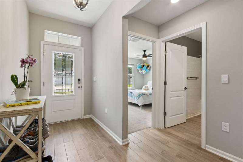 Welcome to this beautifully maintained 4-bedroom, 2-bathroom home in the desirable River Glen community of Yulee, FL. Built in 2023, this residence offers modern comfort with thoughtful upgrades throughout. The spacious split floor plan features wood-look tile throughout the main living areas and plush carpet in all bedrooms for added comfort. The open-concept of this home creates a spacious and inviting atmosphere, ideal for entertaining and everyday living. The heart of the home is the stunning kitchen, featuring granite countertops, a large island, stainless steel appliances, walk-in pantry and ample cabinet space. The primary suite offers a peaceful retreat with a private en suite bathroom adorned with dual vanity, glass enclosed tiled shower and a walk-in closet. Additional upgrades include a whole-home ADT security system, water softener and purification system, honeycomb blinds throughout, and a washer and dryer for your convenience. Enjoy the outdoors year-round on your screened-in porch, overlooking a fenced backyard, perfect for relaxing or entertaining. Community amenities include resort-style pool, kayak launch, fitness center,� clubhouse, splash pad, playground, basketball courts and scenic walking trails. Schedule today to view this beautiful home.