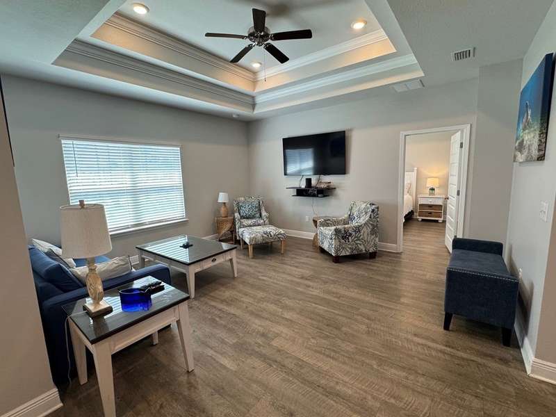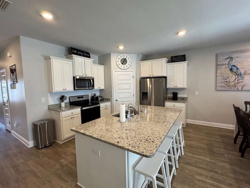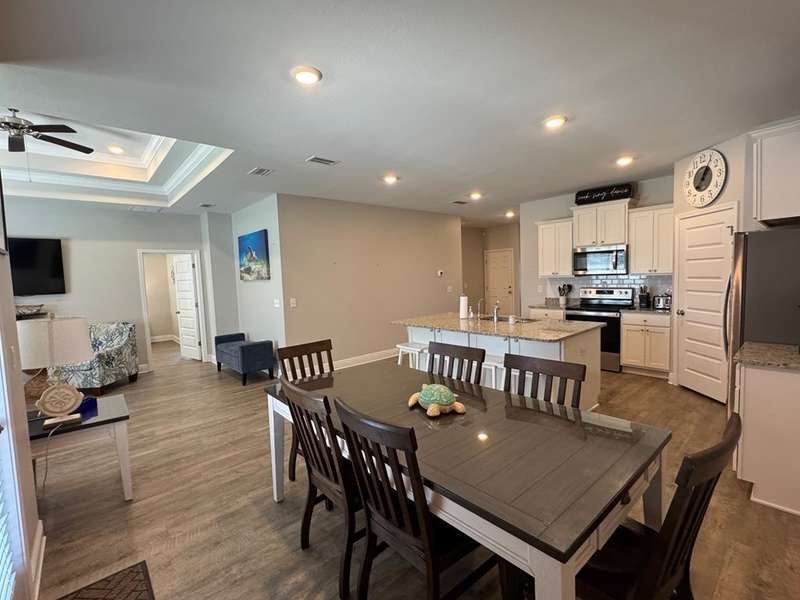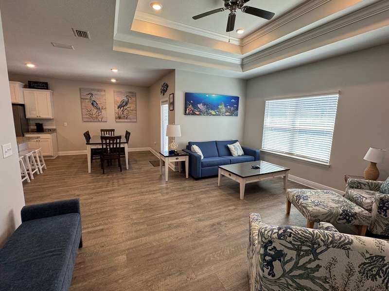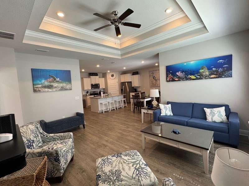 BEAUTIFULLY MAINTAINED 4BD/2BA HOME FOR LEASE IN DESIRABLE WINDMARK BEACH! Fully furnished and rental-ready, this inviting coastal retreat offers a bright and spacious living area featuring a tray ceiling, decorative lighting, and seamless luxury vinyl plank flooring. The open-concept kitchen boasts crisp white cabinetry, granite countertops, stainless steel appliances, a walk-in pantry, and a large center island with breakfast bar seating—perfect for family gatherings. Step outside to the covered patio, ideal for grilling, entertaining, and enjoying the refreshing salt air breeze. The thoughtfully designed single-level layout includes a primary suite with a double vanity and separate shower, plus three additional guest rooms and a full hall bath. An attached garage provides secure parking and extra storage space for beach gear, fishing equipment, and more. Located in the highly sought-after Windmark Beach community, residents enjoy access to top-tier amenities, including a neighborhood pool, scenic nature trails, and boardwalk beach access. This golf-cart-friendly community is just moments from fine dining, live entertainment, a fitness center, and a charming mercantile shop. Lease Details: Rent: $3,100/month (1-year lease), Security Deposit: $3,100, Tenant responsible for utilities and yard maintenance. No application fee, but a $32 fee applies for credit/background check (if approved). Available now! Experience coastal living in this tranquil community at Windmark Beach!