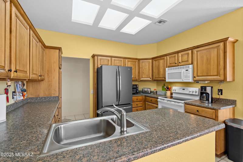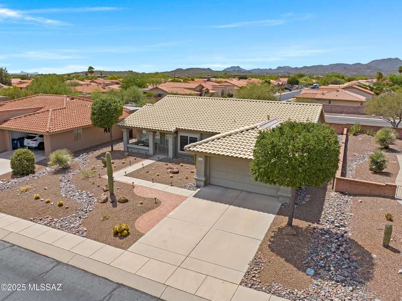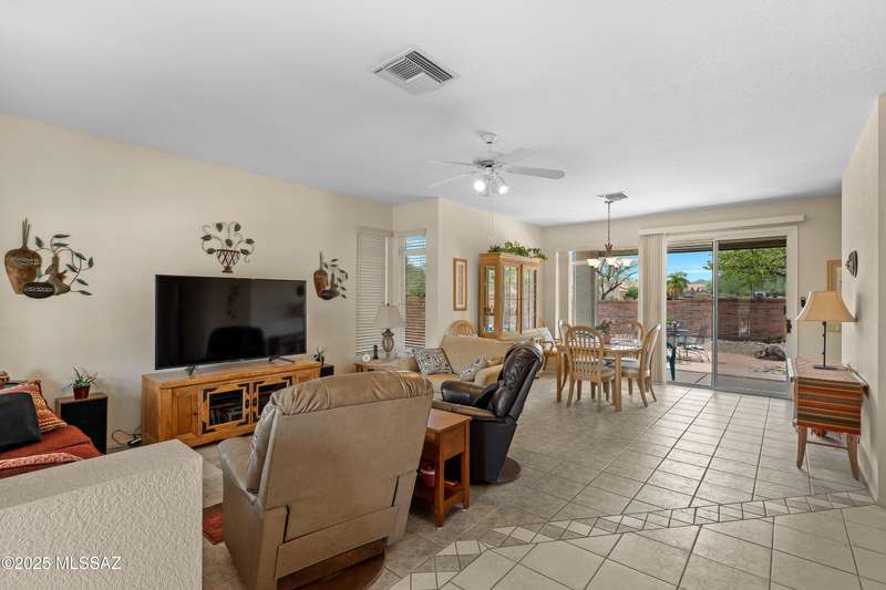 Don't miss this great Rio Vista model featuring 2 bedroom, two bath plus large office/den with double doors. Home offers tons of natural light and entertaining is a breeze with the combined living and dining room just off the kitchen. Updated cabinets in kitchen plus breakfast nook with large windows looking out to the yard. Enjoy Catalina Mountain views from your front patio and relax in your private backyard with covered patio. The backyard is fully enclosed with low care landscaping making it the perfect spot to enjoy amazing Arizona sunsets while your dog is free to roam. Newer roof replaced in 2018. Enjoy all the great resort style amenities that Sun City has to offer: Golf, Pickleball, Tennis, Bocce Ball, Pools, Fitness, Activity Center, and so much more.