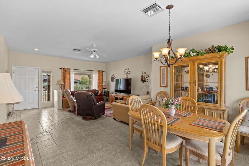 Enjoy Catalina Mountain views from the front courtyard and sunsets from the back patio. This great Rio Vista floor plan has 2 bedrooms plus den, 2 bathrooms, a breakfast nook and dining area in the Great Room. The backyard is enclosed with room for your dogs to run. Great resort amenities included are just a short ride in your golf cart away: The Views Golf Club, Pickleball and Tennis, Bocce Courts, Dog Park, Library, Activity Center, Library, The Bistro, The Views Restaurant, Aquatic and Fitness Center, Community Center and Miniature Golf.