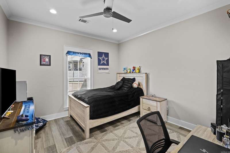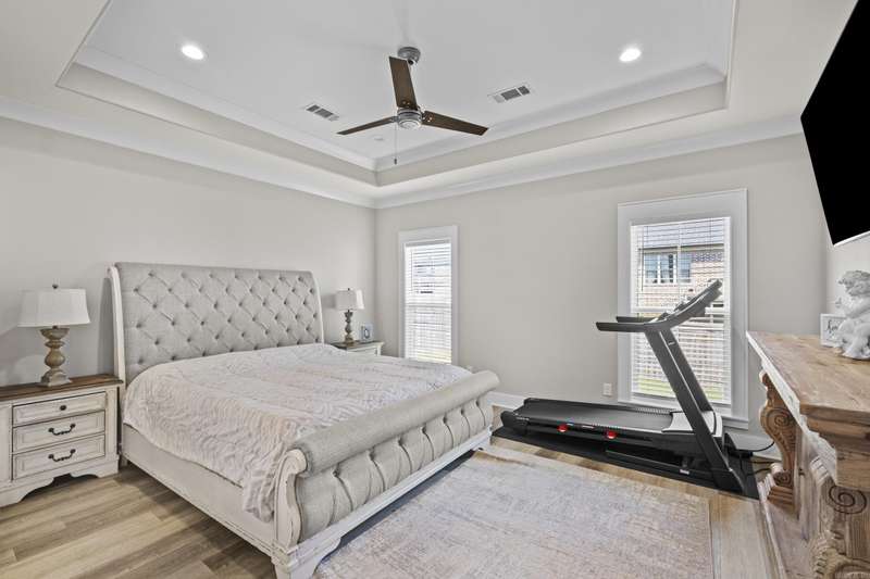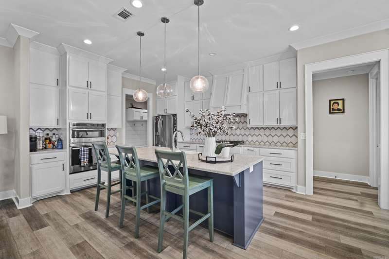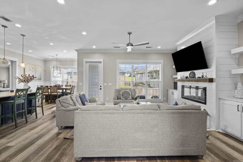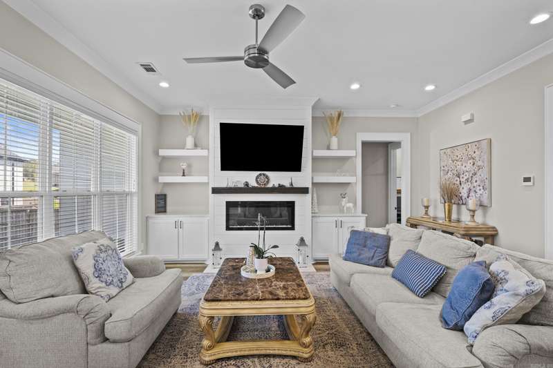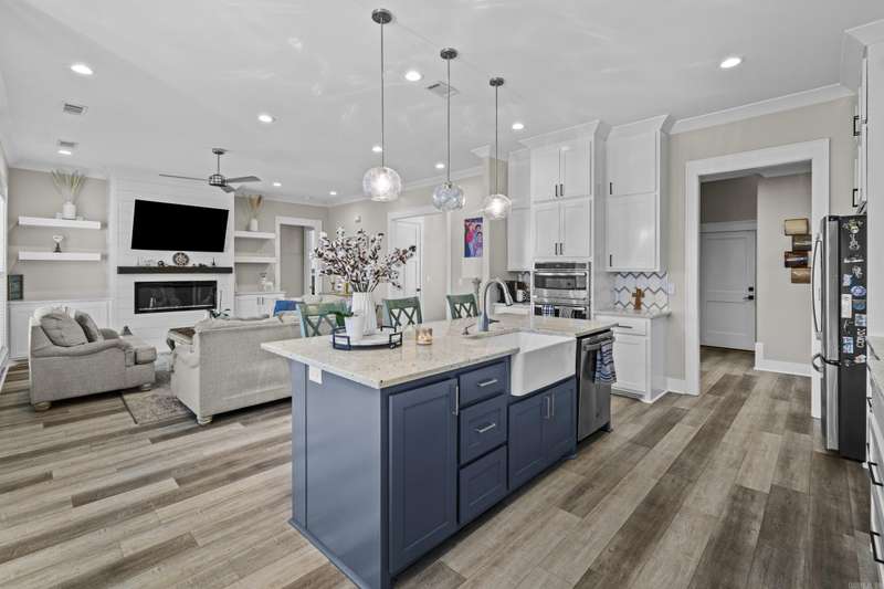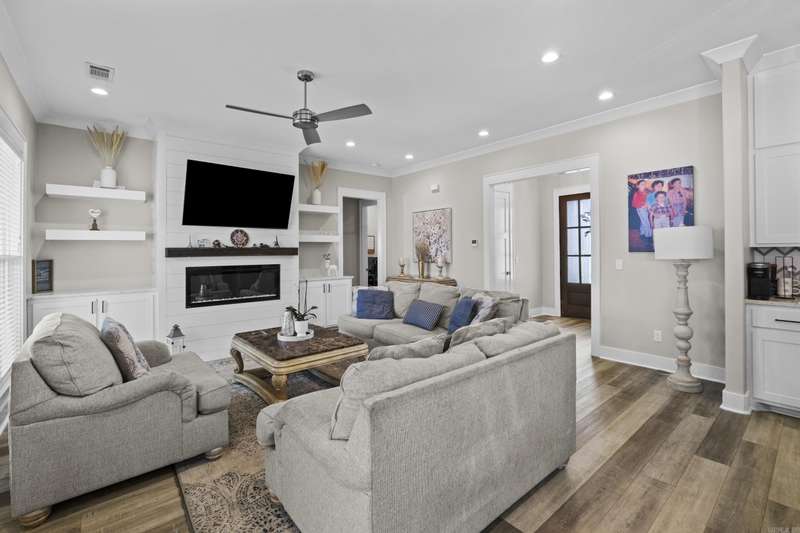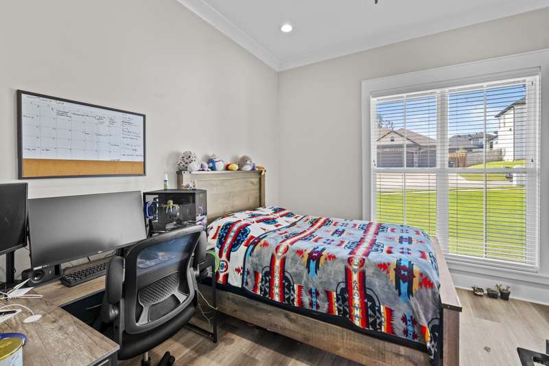 Beautifully maintained 1 ½-story home located in the highly sought-after Creekside Subdivision. This spacious 4-bedroom, 3-bath residence offers a split-level, open-concept floor plan with an office and a versatile bonus room upstairs. The inviting living room boasts 10-foot ceilings, expansive windows that fill the space with natural light, and a modern LED fireplace. The kitchen is a true centerpiece, featuring ample cabinet space, granite countertops, a large island with a farmhouse sink, and a walk-in pantry. The primary suite is a private retreat with a tray ceiling, a luxurious en-suite bathroom, double sinks, a standalone soaking tub, walk-in shower, and a generous walk-in closet. Additional highlights include a spacious laundry room with cabinets, counter space, a sink, and a hanging rail. The upstairs bonus room offers a full bath, closet, and additional storage, making it ideal for guests or a media/game room. Step outside to enjoy the covered patio, perfect for grilling and relaxing, overlooking a fully fenced backyard. Don't miss the opportunity to call this exceptional home yours—schedule a showing today!