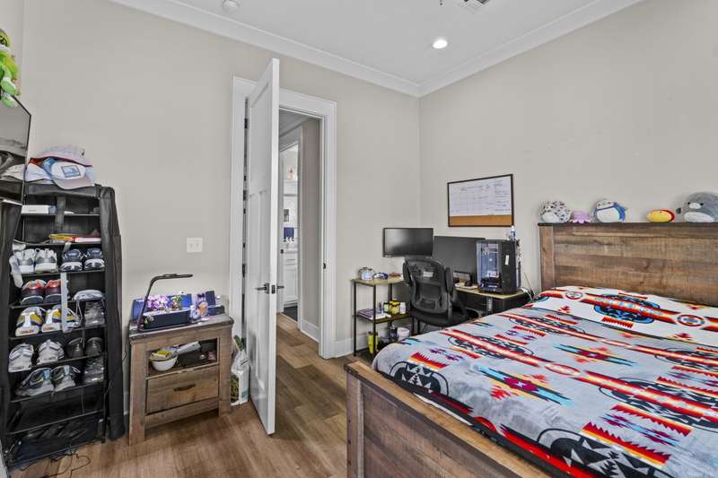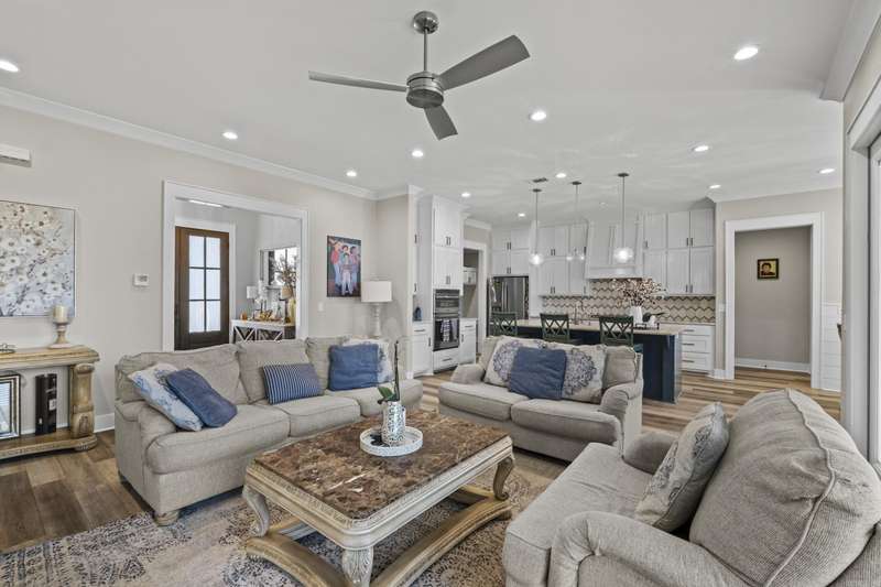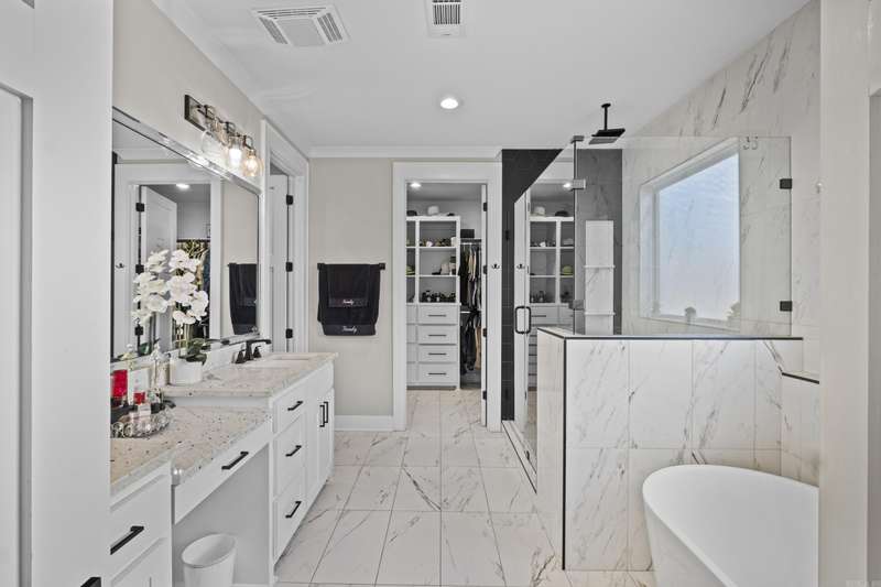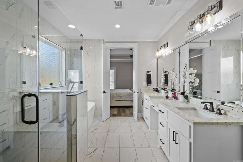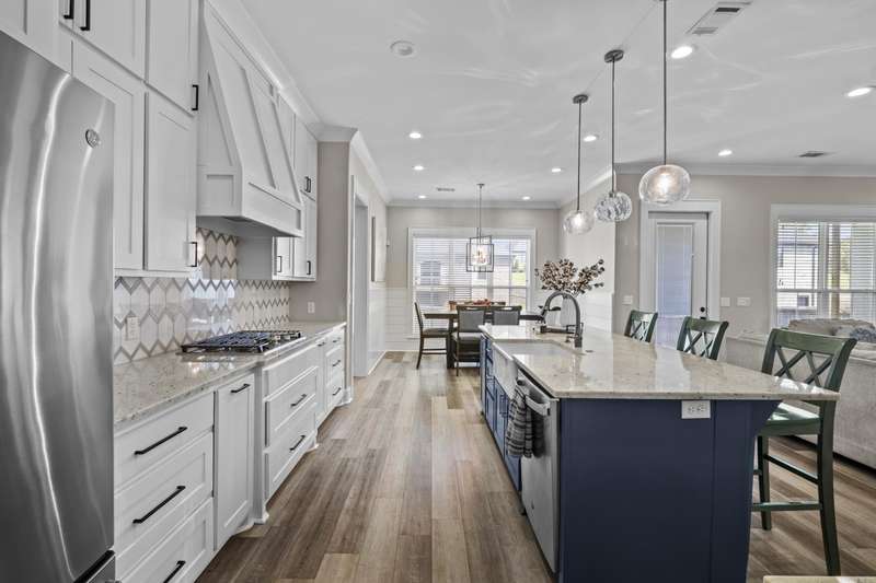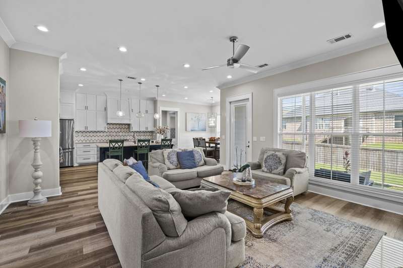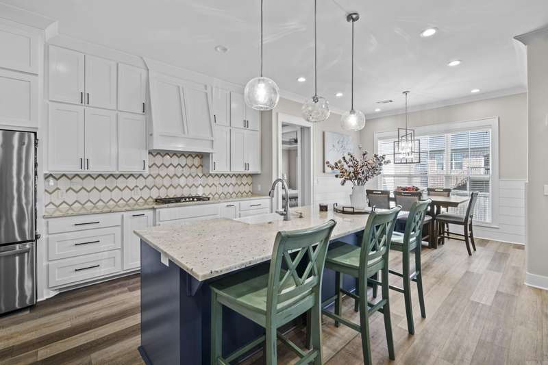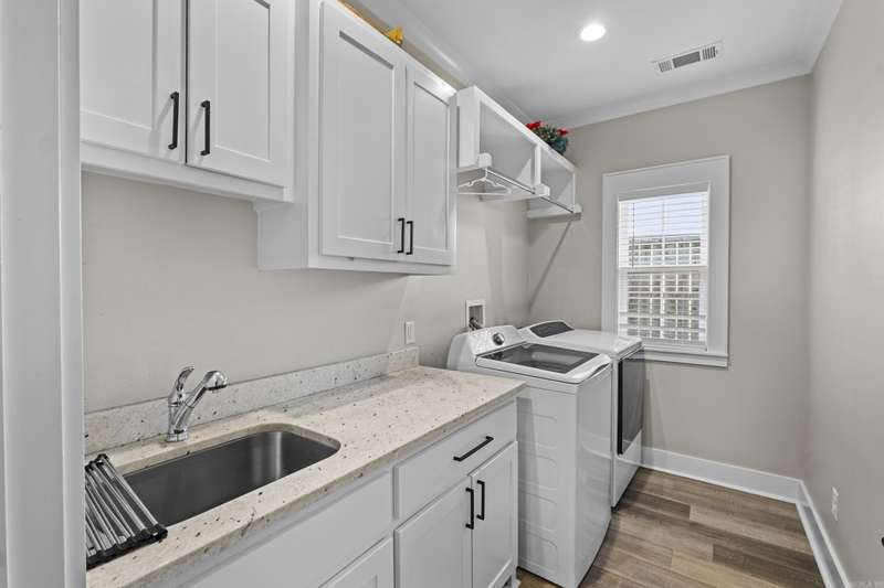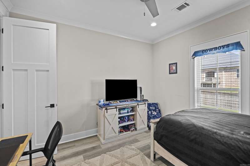 Beautifully maintained 1 ½-story home located in the highly sought-after Creekside Subdivision. This spacious 4-bedroom, 3-bath residence offers a split-level, open-concept floor plan with an office and a versatile bonus room upstairs. The inviting living room boasts 10-foot ceilings, expansive windows that fill the space with natural light, and a modern LED fireplace. The kitchen is a true centerpiece, featuring ample cabinet space, granite countertops, a large island with a farmhouse sink, and a walk-in pantry. The primary suite is a private retreat with a tray ceiling, a luxurious en-suite bathroom, double sinks, a standalone soaking tub, walk-in shower, and a generous walk-in closet. Additional highlights include a spacious laundry room with cabinets, counter space, a sink, and a hanging rail. The upstairs bonus room offers a full bath, closet, and additional storage, making it ideal for guests or a media/game room. Step outside to enjoy the covered patio, perfect for grilling and relaxing, overlooking a fully fenced backyard. Don't miss the opportunity to call this exceptional home yours—schedule a showing today!