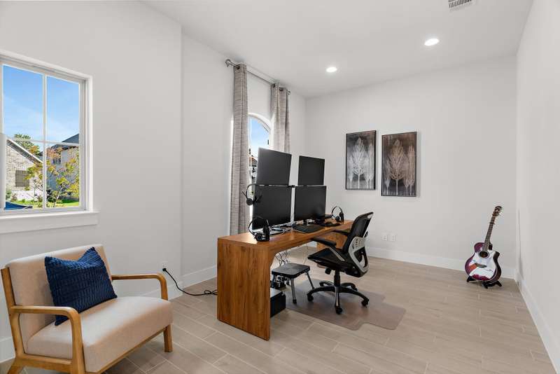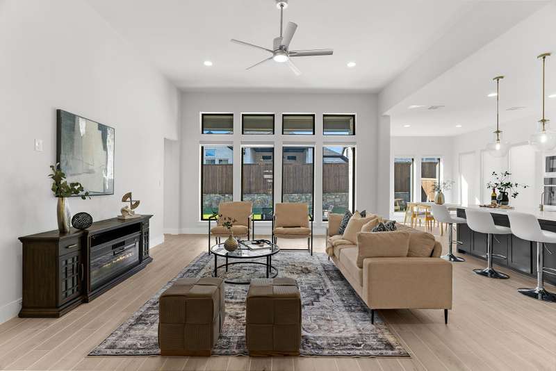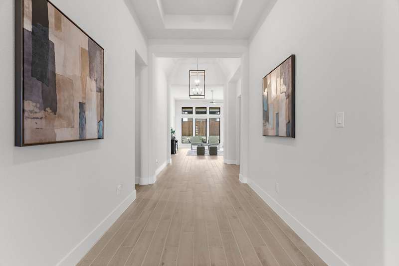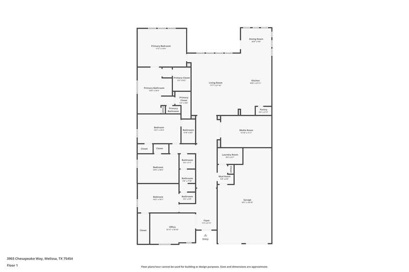 Welcome to Liberty, one of Melissas most sought after communities, where small-town charm meets modern living, and best of all, no MUD or PID taxes! This gently lived-in Perry Home, built in 2023, offers an impressive single-story floor plan designed for comfort, function, and style. East-facing and filled with natural light, this spacious layout features 4 bedrooms, 3 full baths, a private office, and a dedicated media room pre-wired for surround sound and wall sconces, perfect for movie nights or game-day gatherings. Throughout the home, youll find beautiful neutral wood-look tile flooring with carpet only in the bedrooms, creating a seamless and sophisticated flow. The kitchen is the heart of the home, showcasing a statement island, double ovens, and an elegant scalloped tile backsplash that adds just the right touch of personality. The open-concept design connects effortlessly to the family and dining areas, making entertaining a breeze. The primary suite offers a peaceful retreat with a spa-inspired bath and a generous his and hers closet. Step outside to the covered patio and enjoy Texas evenings on your 60' lot, with room for relaxation or play. The three-car tandem garage is both practical and pristine, thanks to a recent epoxy coating, part of nearly $18,000 in thoughtful upgrades added since closing. Other enhancements include a whole-home water filtration system, smart lighting with dimmers, and motorized shades, every detail curated for modern living. The Liberty community offers resort-style amenities including a clubhouse, pool, sport courts for basketball, pickleball, and volleyball, walking trails, and parks. Conveniently located between HWY 121 and HWY 75 and zoned to the award-winning Melissa ISD (Top 50 in Texas). This home offers not just a place to live, but a lifestyle to love. Priced to sell, come see why Liberty truly lives up to its name.