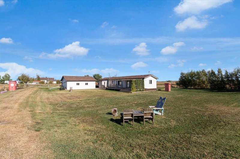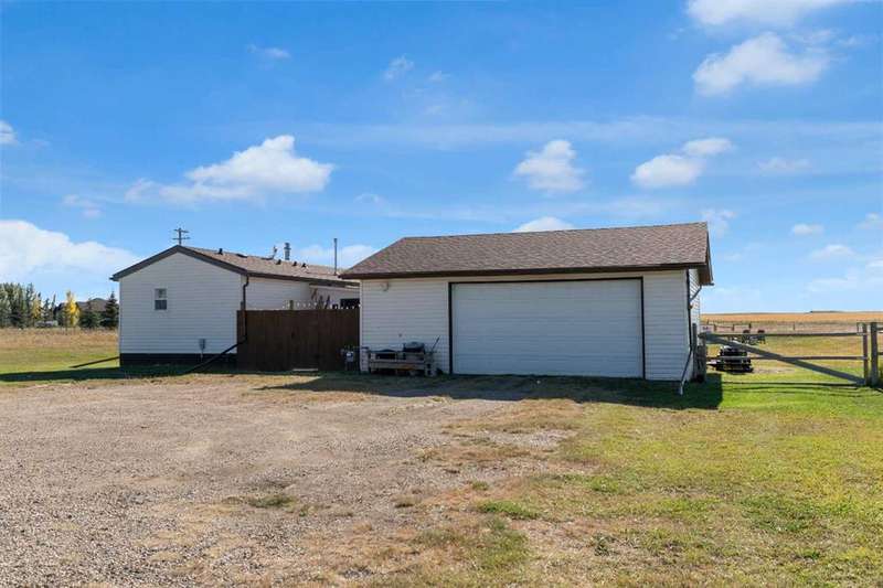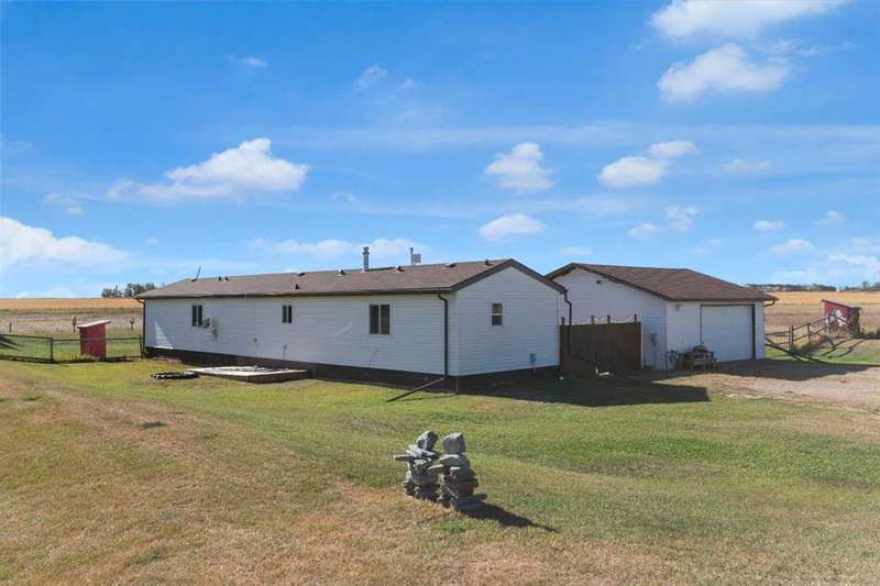 Welcome to 254032 Range Road 245 in the quiet community of Nightingale – the perfect blend of acreage living without the overwhelming upkeep. This well-maintained 1,218 sq. ft. manufactured home, built in 1999, sits on a beautifully landscaped and private 0.82-acre lot overlooking the peaceful prairie fields. Inside, pride of ownership shines with fresh paint, new flooring, and updated baseboards throughout. The open-concept layout offers a spacious living area, bright kitchen, and dining space – ideal for everyday living and entertaining. With 3 bedrooms and 2 full bathrooms, including a primary retreat complete with a walk-in closet and ensuite, this home is designed for comfort and function. Step outside and enjoy the stunning yard – a private oasis where you can relax, garden, or simply take in the views. The detached double garage (27’2” x 25’6”) provides plenty of room for vehicles, toys, and storage. Recent well and septic inspections add peace of mind for the next owners. Don’t let the driveway fool you – once you pass through the gate, you’ll discover a hidden gem where country charm meets convenience.