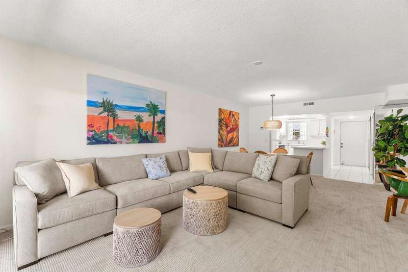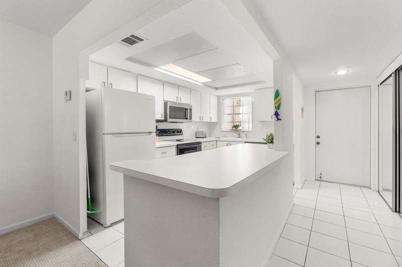 Available Dec 2025 - May 2026 Renovated & pristine 1 BR condo + pull out couch in Living room, spacious room sizes, short walk to beach w/deeded beach access. Upstairs unit backs to greenspace, short walk to clubhouse/Olympic size pool. Light & bright, open kitchen w/plenty of counter space & storage. Very private & large covered patio w/fan. 55+ community w/sauna, tennis/pickleball, pavilions w/grills, billiards. 5 mi from John D MacArthur State Park. Common area laundry nearby. No elevator in this BLG. Washer and Dryer facilities are on the same floor as unit.