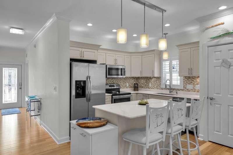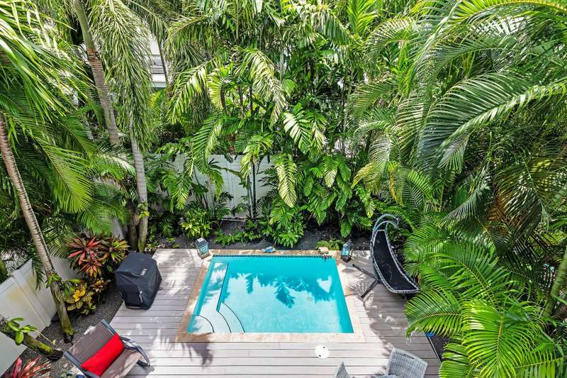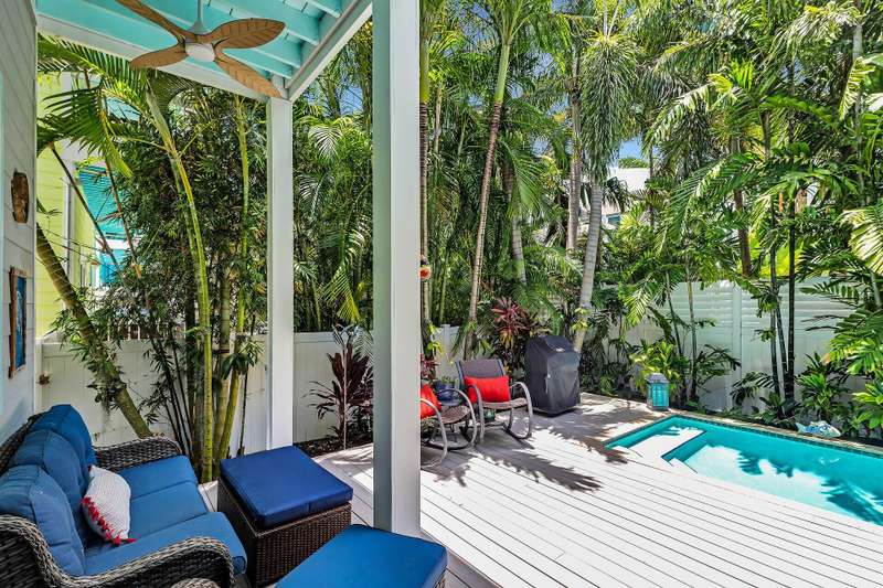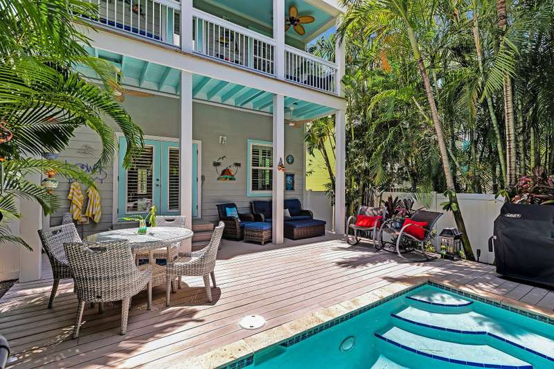 Midtown West Retreat - Elevated Island Elegance with Pool & PrivacyDiscover island living at its finest in this elevated TURNKEY 3BD/3BA single-family home, perfectly positioned in the desirable Midtown West neighborhood.Built in 2014, the home offers a smart layout with one bedroom and full bath on the main level--ideal for guests or flexible living--and two upstairs bedrooms, each with its own en suite bath and treetop view porches. The light-filled open floor plan features a beautifully updated kitchen with granite countertops and freshly painted interiors. Designed for comfort and built to last, the home features plentiful storage and includes impact-rated doors and windows, Hardie board siding, a metal roof, and central A/C.Step outside to your private tropical oasis with lush foliage. An expansive composite deck surrounds the heated pool, offering plenty of space for outdoor dining and lounging. Additional highlights include off-street parking, two levels of thoughtfully designed living space, and a welcoming neighborhood vibe--just minutes from beaches, parks, the pier, and Key West's best dining and entertainment.Move-in ready and made to last--experience effortless island living today.
