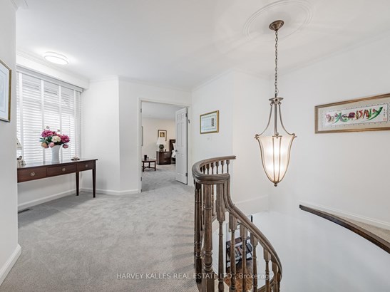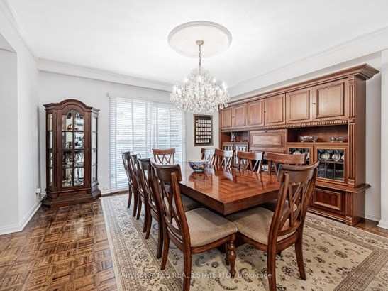 Welcome to 92 Prue Ave! Nestled on a premier cul-de-sac, this beautifully maintained and impressive family home sits on a magnificent 54' x 124' landscaped lot and offers outstanding curb appeal. As you enter the grand 16' foyer with its elegant circular oak staircase, the home immediately exudes warmth and sophistication. This stunning 4 + 1 bedroom detached residence features generous principal rooms, including a sun-filled formal living and dining room and a warm, inviting family room, creating the perfect blend of comfort and style. The ideal main-floor layout is designed for entertaining and effortless family gatherings. The bright, functional kitchen with stainless steel appliances, quartz counters and centre island, opens to a walk-out deck overlooking the garden and pool. The exceptional primary bedroom retreat includes a luxurious 5-piece ensuite, a sitting area, and his-and-her walk-in closets. The finished lower level offers an expansive recreation space, sauna, and a direct walk-out to the garden oasis, complete with a beautiful 16' x 32' inground concrete pool set within a private, landscaped backdrop. The concrete block foundation stands as a testament to the home's quality construction, care, and craftsmanship. Perfectly situated close to top neighbourhood amenities including synagogues, schools, parks, transit, and shopping, this is a rare opportunity to own a fabulous detached home, with 5184 square feet of living space on three levels, in one of Toronto's desirable family communities. Truly a gem not to be missed! Please note: Some room and exterior photos are virtually staged and/or AI enhanced. (id:6370)