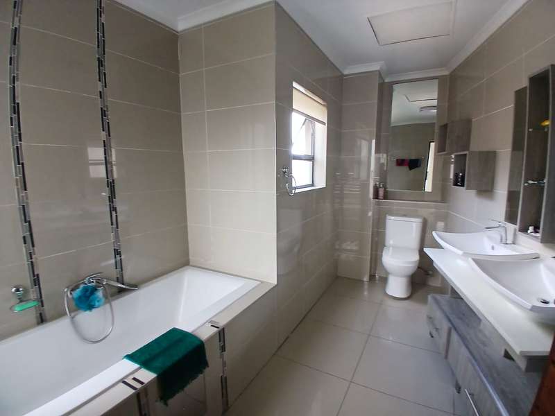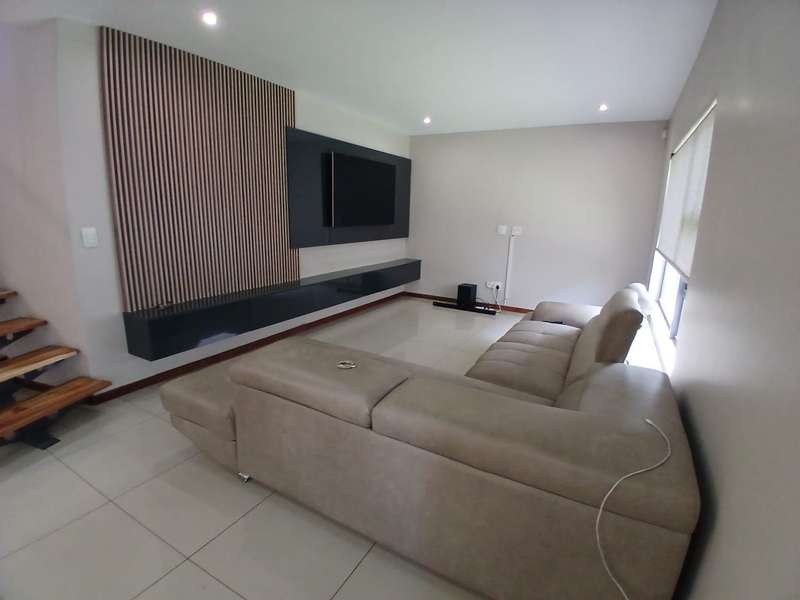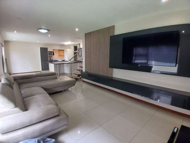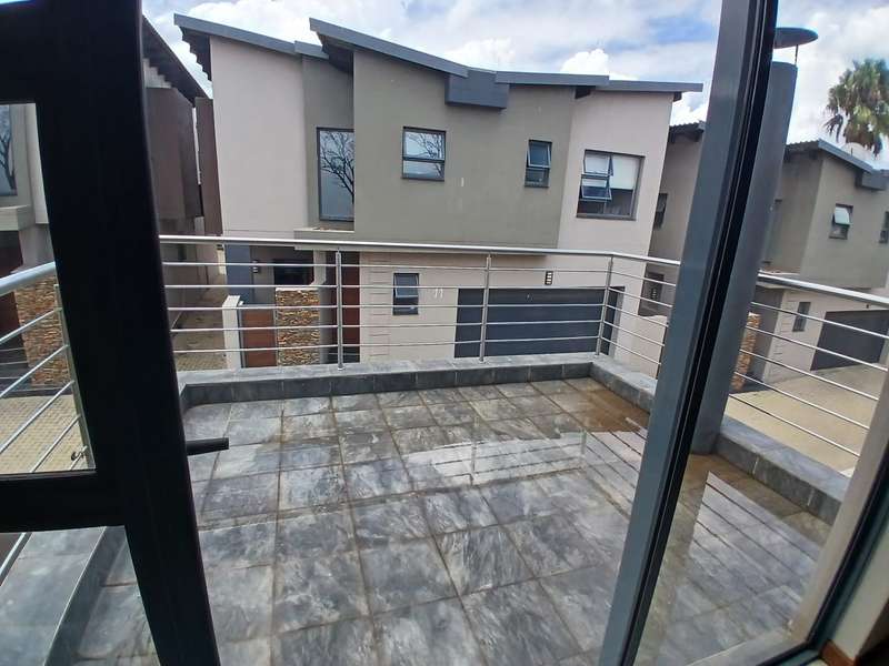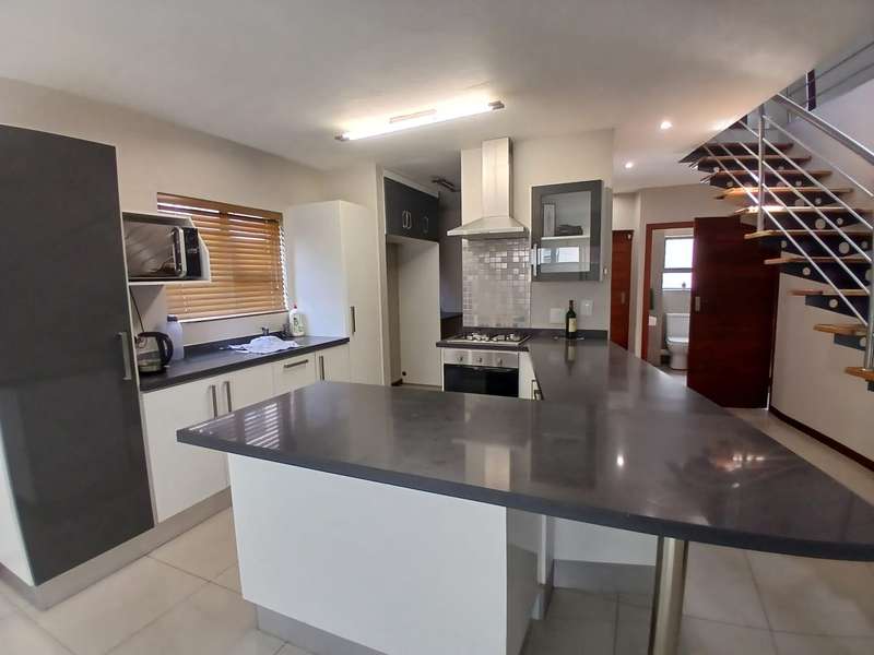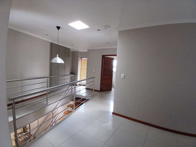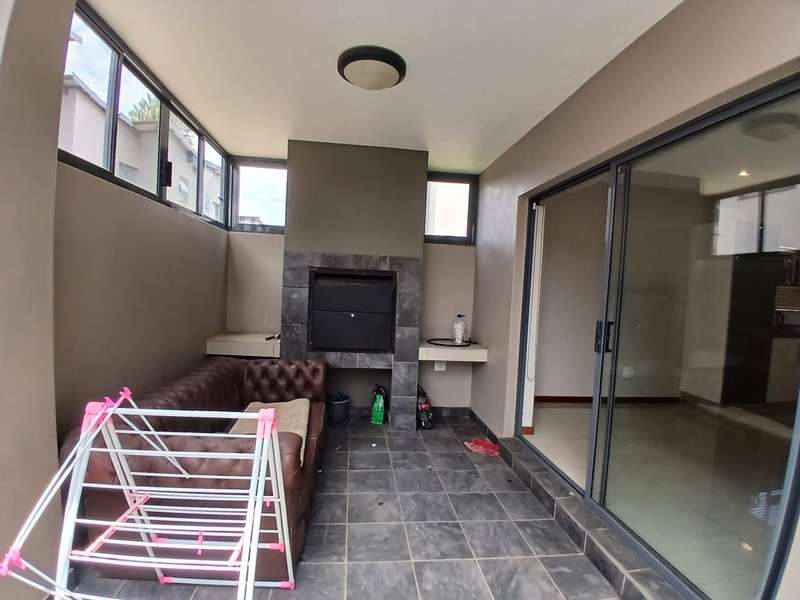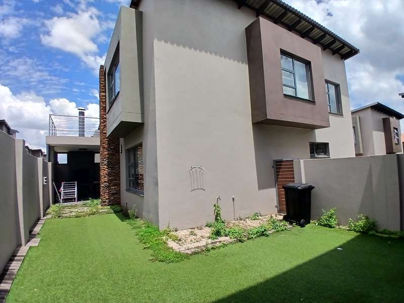 Stylish 3-Bedroom Double-Storey Townhouse in a Pet-Friendly Community Discover the perfect blend of comfort and style in this stunning 3-bedroom, 3-bathroom double-storey townhouse, offering sectional title ownership in a sought-after pet-friendly community. Spacious open-plan lounge and dining area with abundant natural light, thanks to skylights. Modern kitchen with sleek granite countertops, a gas stove, and an open design that flows seamlessly into the dining area. All bedrooms are generously sized, with the main bedroom featuring its own private balcony for peaceful mornings. Two of the three bedrooms include luxurious en-suite bathrooms, ensuring ultimate privacy and convenience. Entertainer’s dream with a covered patio and built-in braai, perfect for hosting family and friends. Fibre connectivity for modern living, keeping you connected at all times. Neatly landscaped private garden for relaxation and outdoor enjoyment. Double garage with direct access to the townhouse for added convenience and security. Top-tier security features including burglar bars, electric fencing, and security doors for peace of mind. This exceptional townhouse is ideally designed for family living with a touch of elegance and practicality. Don’t miss out on the opportunity to make this beautiful home yours.