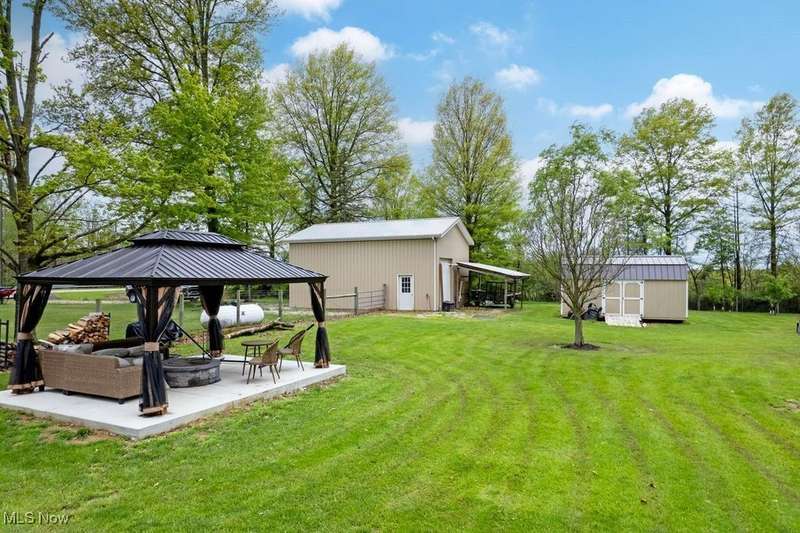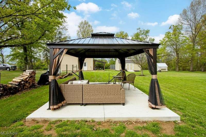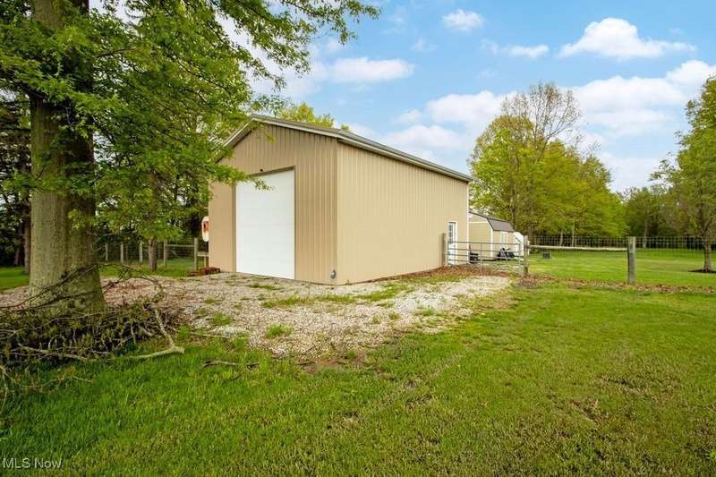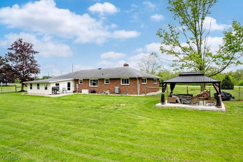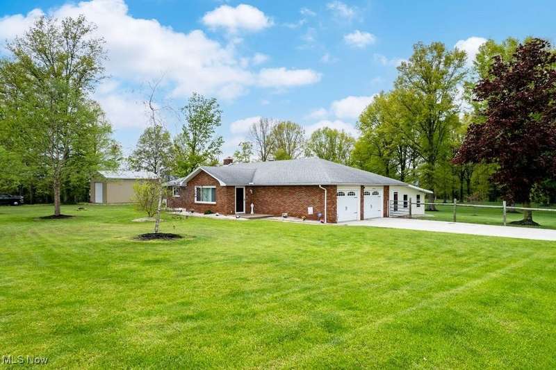 Have you been searching for easy, country living? Look no further. This meticulously cared for brick ranch sits on 1.74 pristine and picturesque acreage. Rear of the fenced in property, is surrounded by woods and lots of space for the kids and animals to play. So close to the town but not actually in the city limits. Outside there are 3 outbuildings, that include a 6x8 chicken coop, a 10x20 storage shed, and a 24x32 building that has its own separate driveway, a concrete floor, with an automatic garage door opener and a 12 ft in height by 12ft in width entrance door. It has a 2nd 10/9 back too. It was built to house an RV, or for the professional over the road drivers, your tractor trailer cab. All three outbuildings have electricity and plenty of room for all your toys. Do you like to entertain? Well, how about a grand gazebo? It sports a 12/16 gazebo that has concrete flooring. This brick home is nicely updated with many improvements and is move in ready. It comes with a Blink security system with 5 cameras that covers all entrances and outbuildings that stay with the home. The attic recently had multilayered space age insulation installed to help keep your energy costs down during the harshest of Ohio weather. It also had a solar attic ventilation system installed that removes heat and humidity that`s controlled by thermostat and humidistat. The living room offers wood flooring and a large picture window. The kitchen dining area is spacious and open to the living room. The three bedrooms are very nicely sized, with wood flooring, and are near the large bathroom. A nice, enclosed bonus room, that houses a hot tub. It has several screened in windows and an exit door to your backyard. On the lower level, how about a finished basement, with a wood burning fireplace and finished storage area? This home also offers a whole house generator and a tankless water heater for endless hot water. So much to love about this home. Call for a tour and a private showing today!