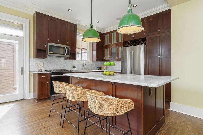 This stunning brick home seamlessly combines original architectural charm with contemporary updates. Close to Schiller Park and Huntington Gardens, it boasts rich walnut-stained oak floors, high ceilings, and a gracious foyer featuring an original carved staircase. The chef's kitchen, with a spacious island and ample cabinetry, flows into the family room. Additional highlights include a formal dining room with a fireplace, three bedrooms, two full baths, a first-floor laundry, and a private courtyard with stone terracing. A two-car garage completes this exceptional home. See A2A remarks.