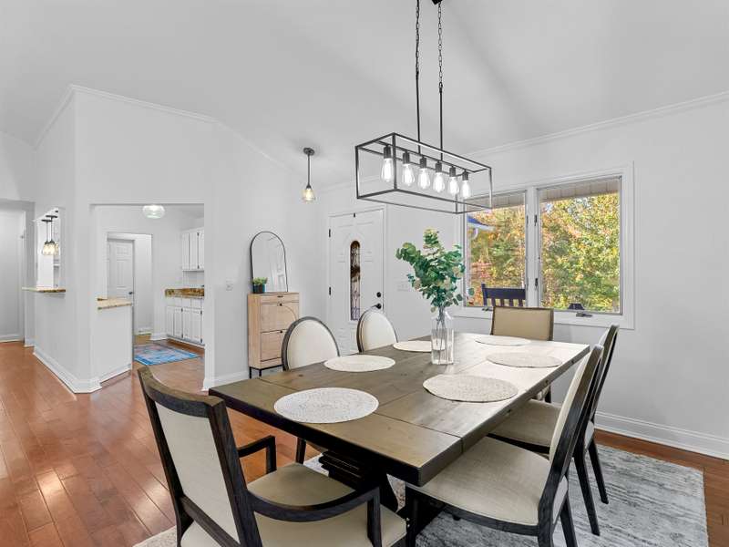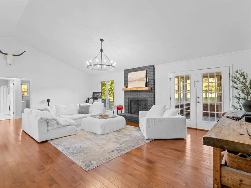 The single-family residence at is a contemporary styled brick home built in 1990 on a 1.54-acre lot. The home features a split-bedroom, open floor plan with cathedral ceilings. The one level floor plan has lots of living space, with wood and tiled floors featuring three bedrooms, two full bathrooms, and one half bathroom.The living room includes a fireplace. The home also has a four-season sunroom and a laundry room on the main level. Exterior features include a rear fenced yard, and an attached two-car garage. The property has a huge unfinished basement with poured concrete walls. Recent paint and a new roof has this home move in ready!