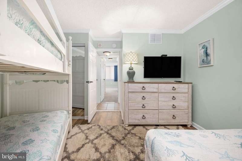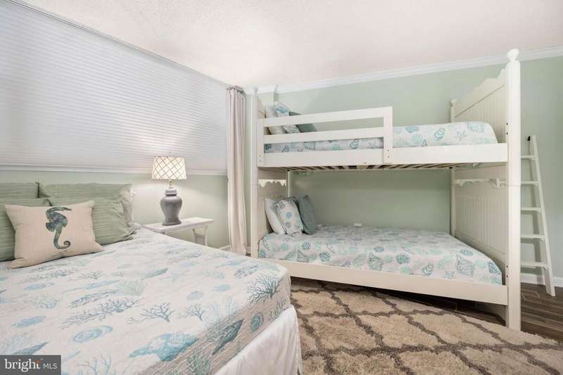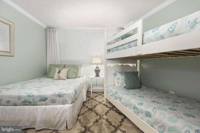 Welcome to 8500 Coastal Highway Unit 308, a charming 2 bedroom, 2 bathroom condo in the heart of Ocean City. Updated kitchen with subway tile backsplash, breakfast bar, stainless appliances, quartz countertops and ample cabinet space. Off the kitchen is a spacious living room - dining room combo that provides a nice place to gather and opens up to the large balcony. The master bedroom is spacious, has a view of the bay, features a master bath and direct access to the balcony. The second bedroom is a versatile space accommodates guests with a twin over twin bunk and a full/queen bed. The hall bath is updated, bright, charming and features a shiplap wall. Step outside onto the large covered balcony, where you'll be greeted by a view of the bay and a delightful peek of the ocean. This outdoor oasis serves as an extension of your living space, perfect for enjoying morning coffee or watching the sunset over the bay. Enjoy cost saving heating and air conditioning... the building is equipped with geothermal heating and cooling making it eco-friendly and efficient. The geothermal system is owned and maintained by the Antigua building & specific vendor. Unit conveys furnished, with the exception of the large beanbag chair and sellers personal decor & items. This property is not affected by the new rental laws.