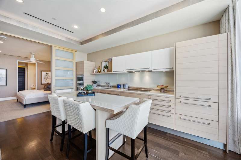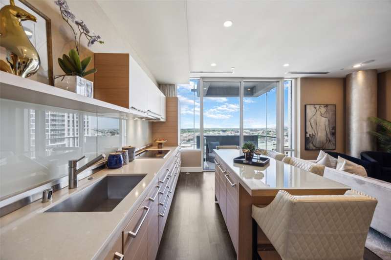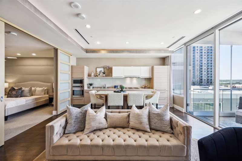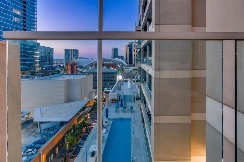 Opportunity meets location at the W Residences South Tower. Directly across the street from the transformative NorthEnd development and the future Goldman Sachs campus, an 11 acre project with a 1.5 acre urban park, cutting edge office space, and vibrant amenities, this home offers a rare chance to live at the center of Dallas next great destination.Inside, this one of a kind 10th floor residence is the only layout of its kind in the building, designed to maximize both style and livability. West facing floor to ceiling windows frame sweeping sunset views, complemented by electronic roll down shades and blackout curtains for effortless light control. The home is finished with wide plank wood floors, custom cabinetry, grasscloth wall coverings, and an upholstered headboard wall that adds warmth and sophistication. Uncommon for a one bedroom, the residence also provides an extraordinary amount of closet space, along with a full size laundry area, spa inspired bathroom with double vanities, soaking tub, and separate shower.Adding to its value, the home includes an assigned parking space and two private storage units, with additional guest parking available.Life at the W means enjoying a full suite of amenities including 24 hour concierge, valet service, in residence dining, two resort style pools, fitness centers, and the brands signature Whatever Whenever service. Just steps from the American Airlines Center, dining, shopping, and entertainment, this home is as much about lifestyle as it is about location, a perfect blend of todays luxury and tomorrows opportunity.