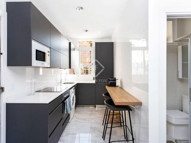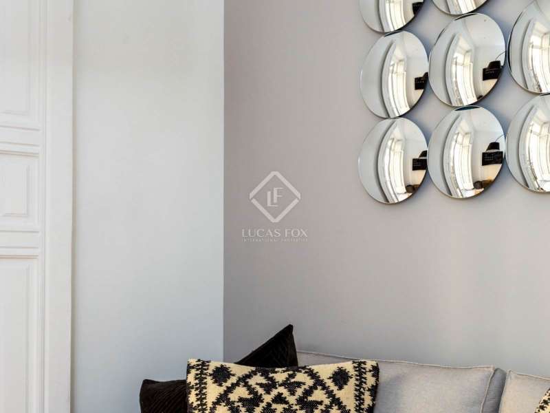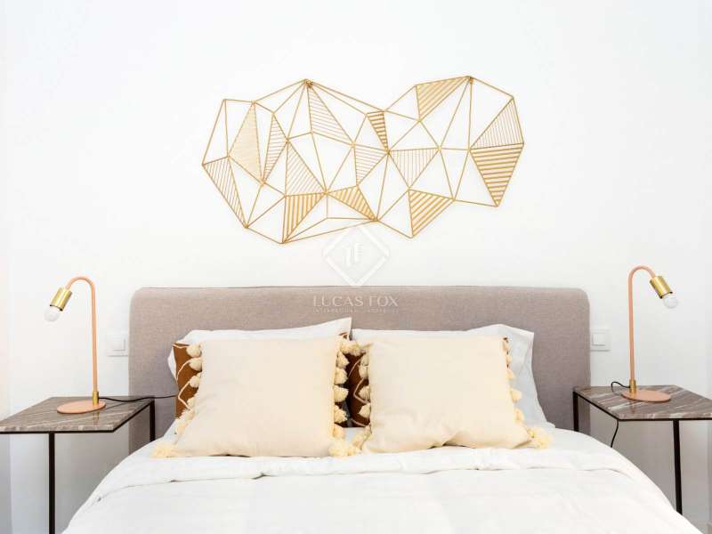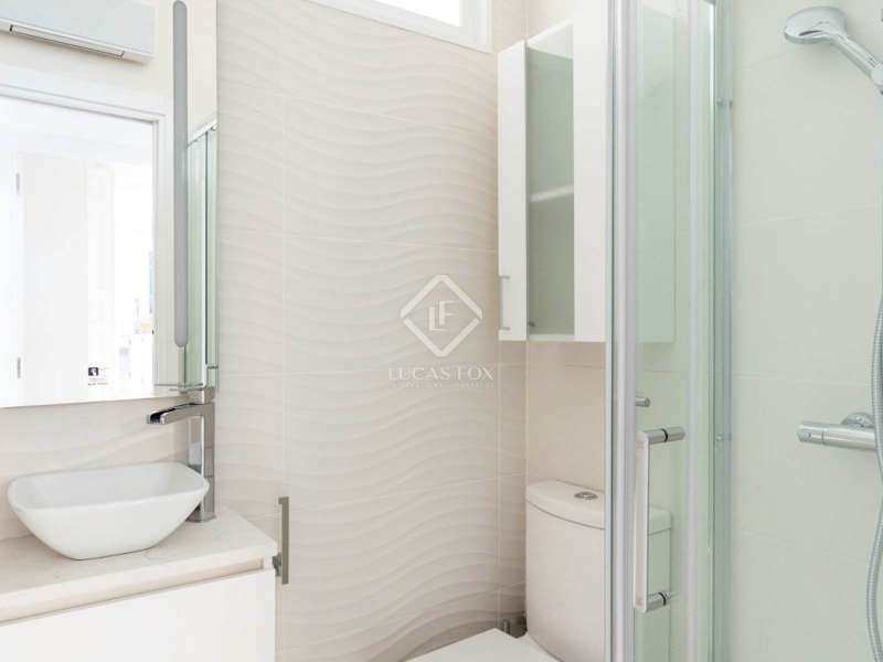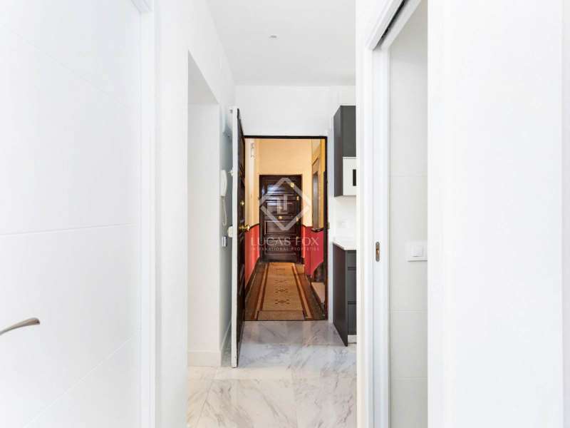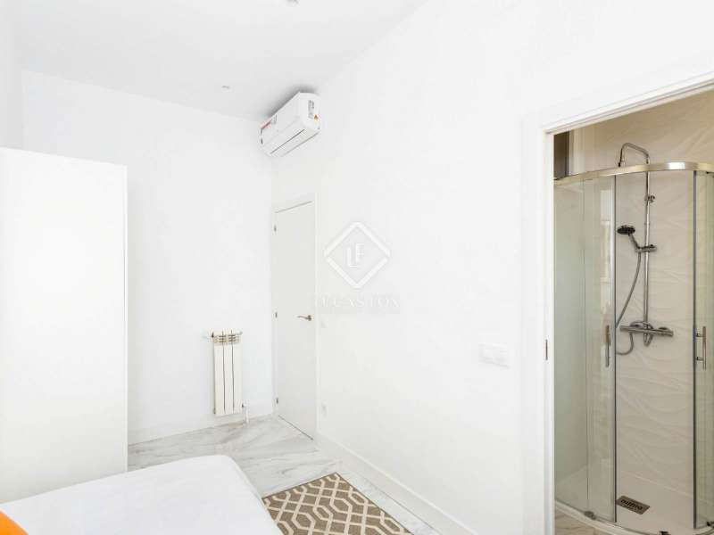 Lucas Fox presents this magnificent apartment, completely renovated and furnished with high quality materials in Madrid. The property is located on the first floor, but with the height of a second floor. It also offers privacy and tranquility, without giving up proximity to everything you need. This charming property consists of two large double bedrooms, one of them with a private bathroom. One of the bedrooms has a balcony overlooking the street Ilustración, while from the other you can enjoy a panoramic view of the new hotel in the area. The living room, with an elegant and modern design, has a second balcony overlooking the street. The separate kitchen is fully equipped with top-of-the-range appliances , including an oven, ceramic hob, refrigerator, and more, offering everything you need to enjoy a functional and quality kitchen. Thanks to its large windows in all rooms, this property enjoys exceptional natural light throughout the day. It also has an individual gas boiler and air conditioning in all rooms, for total comfort at all times of the year. Please contact for more information.