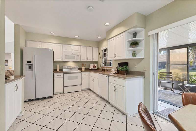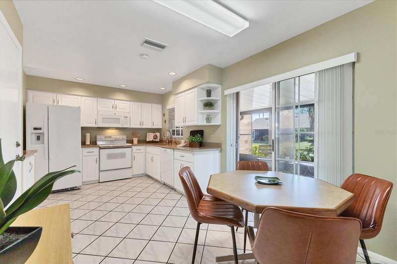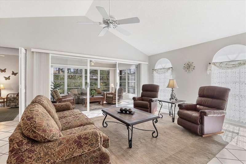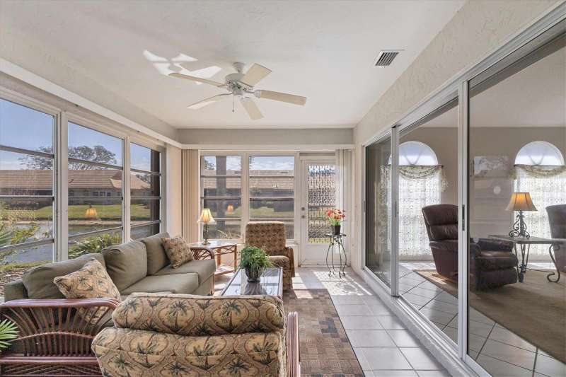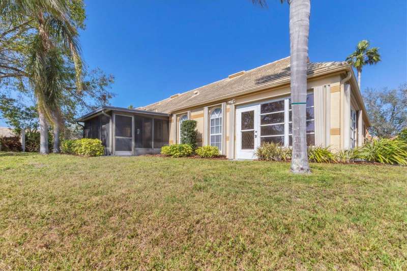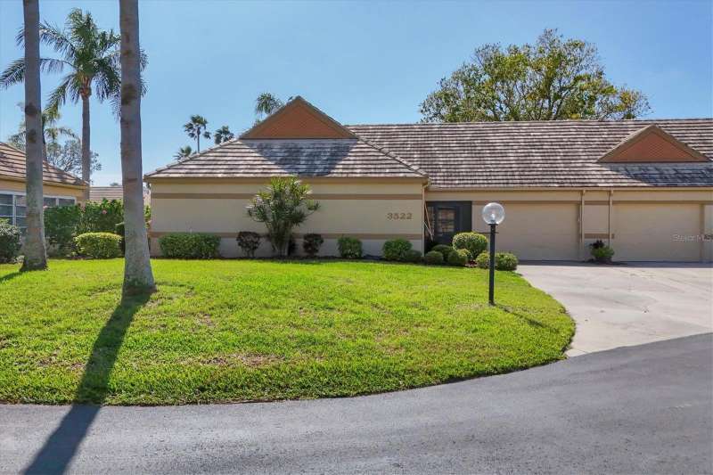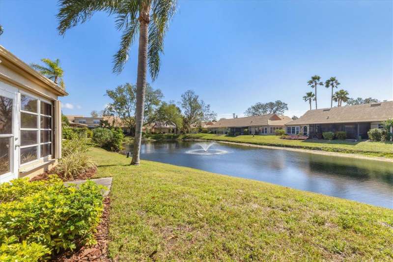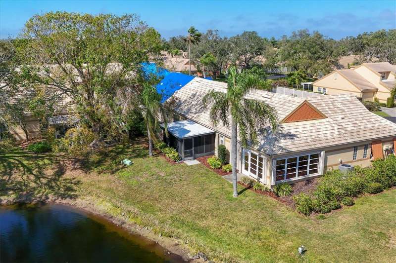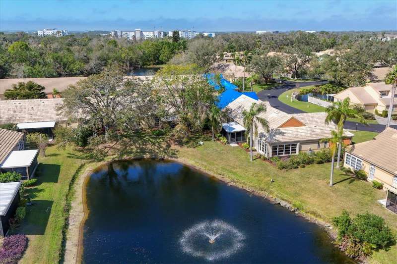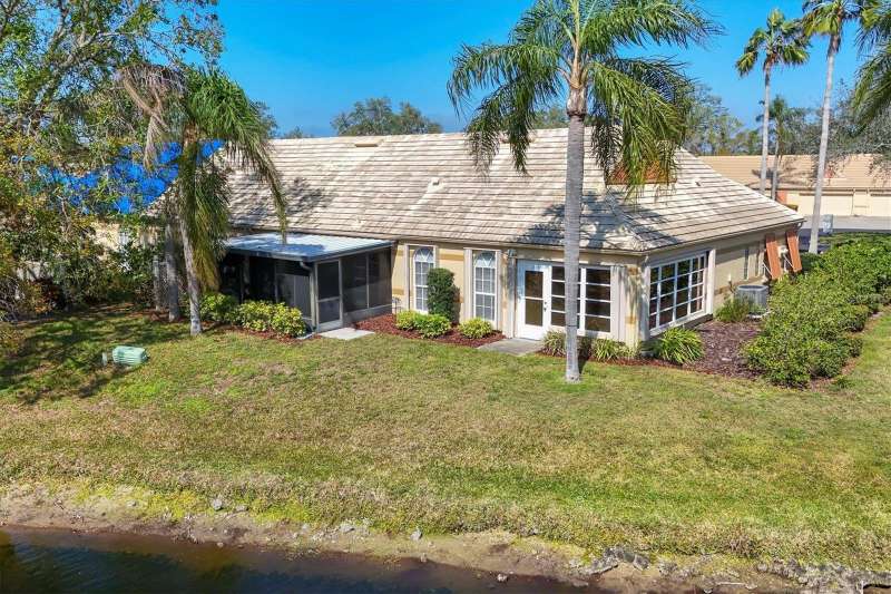 Welcome to this beautifully maintained 3-bedroom, 2-bathroom villa offering a serene and peaceful pond view. Perfectly designed for comfort, this home features a spacious layout with vaulted ceilings, creating a bright and open atmosphere throughout. The oversized 1-car garage provides plenty of storage, while the screened lanai with vinyl panels ensures year-round enjoyment, no matter the weather. Located in the popular Lakebridge community, a prime spot with easy access to plenty of shopping, dining, and entertainment options. This residence is also just a short drive from IMG Academy, making it an ideal choice for those seeking convenience and fun. Whether you're enjoying the peaceful pond view, partaking of a game of tennis or a swim in the community pool or exploring the nearby amenities, this villa offers the perfect balance of comfort and location. Don’t miss out on this fantastic opportunity to own a truly well-maintained home in an unbeatable location!