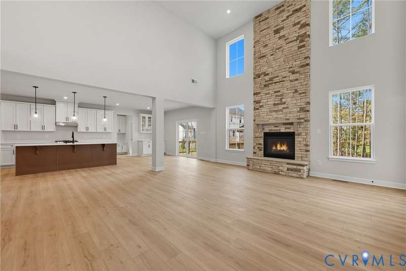 Rare opportunity for a brand-new quick move in!!! The first floor features an open concept featuring the show shopping two-story family room with a soaring stone fireplace that creates a breathtaking focal point! The kitchen has an oversized island, wall oven, quartz countertops, and soft close cabinets. Other rooms include formal dining room and study. Upstairs you will find the bedrooms-including a luxurious owner's suite featured tray ceilings, dual vanity bathroom, and two walk-in closets. The 2nd floor also features a loft for family movie night and a laundry room that includes a utility sink to make stain cleaning easy! The finished basement includes a large open area, media room, home office, and full bathroom! Outside you find both a covered porch and deck perfect for entertaining! There are too many features to list!!! Meridian is located in Chesterfield County in the highly sought after Magnolia Green community. Magnolia Green is an award winning, top-selling community where the golf course has a Jack Nicklaus Design in association with Tom Clark. With its state-of- the-art amenities, It's a beautiful site! Ever lived in a community where you had to decide which of the 5 pools to go to today?! No need to drive to a water park, we've brought the water park to you! Meridian at Magnolia Green is a convenient commute to the business and culture of Richmond and all the shopping and dining that Short Pump and Chesterfield have to offer.