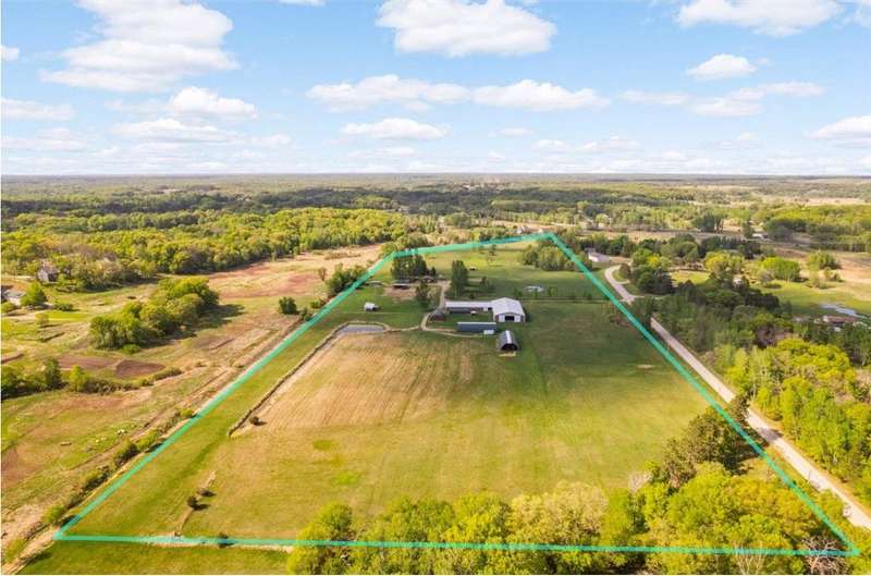 This stunning 30.75-acre Elk River equestrian property is a dream come true for horse enthusiasts and nature lovers alike. With rolling green pastures, turn-key facilities, and a charming home, this one-of-a-kind estate is ready for you to move in and enjoy country living at its finest. The efficient and cozy 2-bedroom, 1-bath home offers an inviting single-level living floorplan with plenty of natural light and recent updates, or build your dream home here and utilize the existing home as an accessory dwelling unit. Equipped for serious equestrians, the property features a spacious horse barn (36x100) with 9+ stalls, wash stall, tack room, and plenty of hay storage, with direct access to the fully-insulated indoor riding arena (126x60) for year-round training. The acres of well-maintained pastures provide plenty of turnout space and high-quality grazing for horses or other livestock. Additionally, multiple Coverall outbuildings provide ideal storage for your hay and equipment needs. For dog lovers or those seeking a multi-use facility, a dedicated dog kennel is also included, making this property ideal for breeding, boarding, or personal use. Located just a short drive to Twin Cities amenities, this property offers the best of both worlds. Whether you're an equestrian professional or simply looking for a private escape, this farm is a rare find. Don't miss the opportunity to own this exceptional slice of paradise!