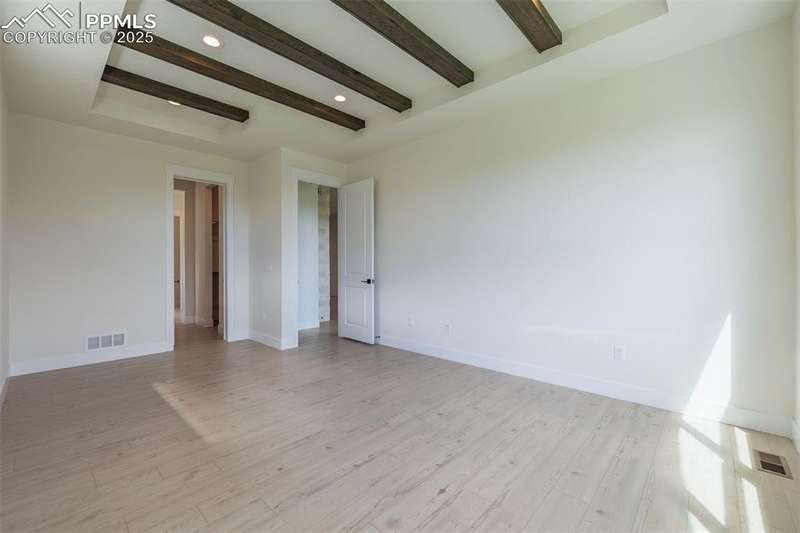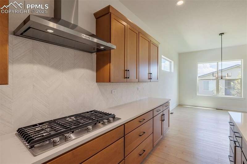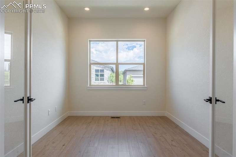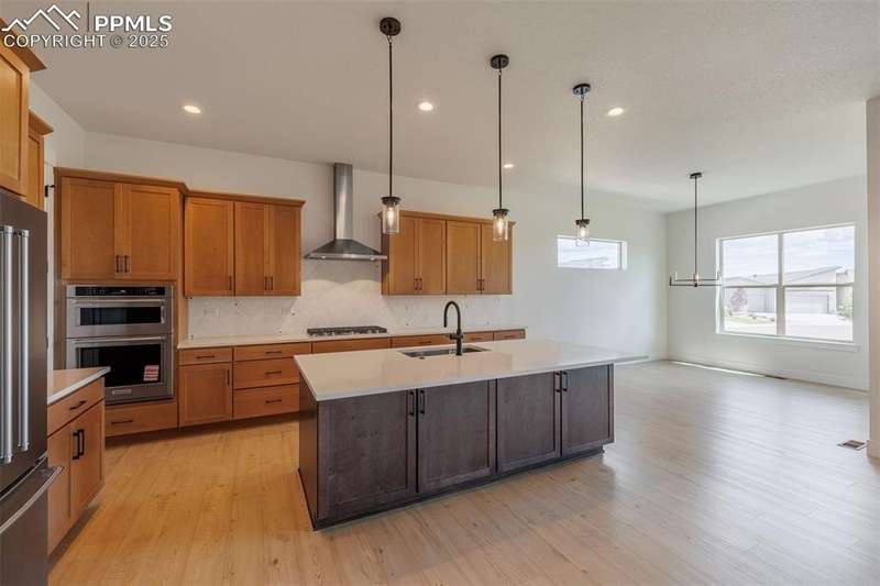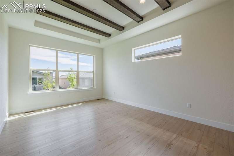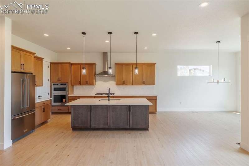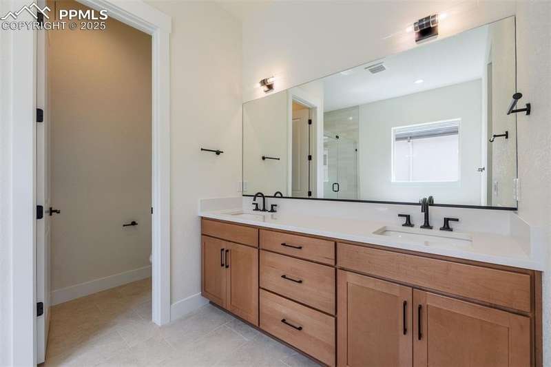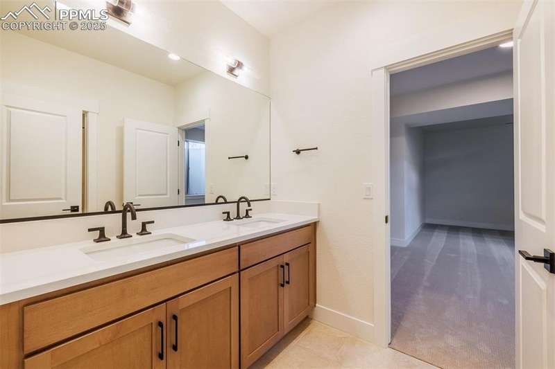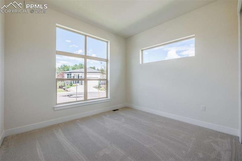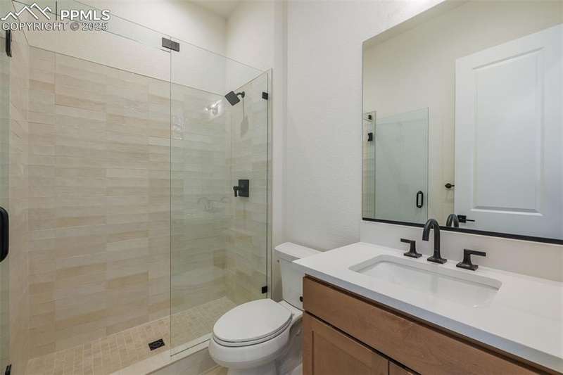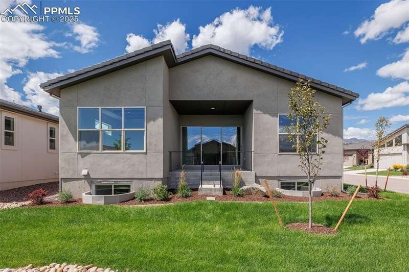 Welcome to single-level living at its finest in the gated community of Kissing Camels! This brand-new home features modern touches combined with high-end finishes. The gourmet kitchen makes a statement with premium upgrades, two-tone MasterCraft cabinetry, custom backsplash, and Kitchen Aid stainless steel appliances. Beautiful stacking slider makes the great room feel even bigger and more grand! The spacious primary bedroom suite offers beamed ceilings, a luxurious bath with spacious shower & freestanding tub, and double walk-in closet space. A finished lower level provides additional living space with an expansive second living area and fireplace as well as two additional massive bedrooms. This home is complete with designer-curated finishes. Full landscaping included. Other home amenities include, central air, Eldora white stone fireplace surrounds, and 3-car tandem garage. Come experience your dream home by scheduling a showing today. HOA dues include manned security, snow removal on private streets & trash removal. Walking distance to the Garden of the Gods Resort and Kissing Camels Golf Club, which offers numerous amenities including spa, gym, swimming pools, hot tubs, pickleball & tennis courts, and fine dining, with club membership. Plentiful hiking & biking trails close by. Excellent location only minutes from downtown, Manitou Springs, & Kissing Camels Golf Club. Rare opportunity to acquire one of the last remaining new homes in The Preserve at Kissing Camels. Don't let this beautiful home on a corner lot get away!