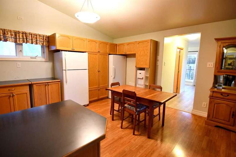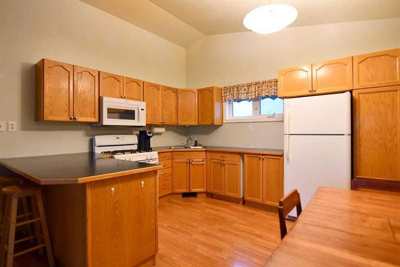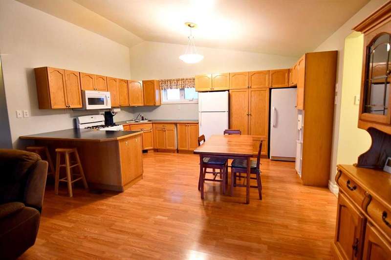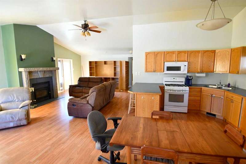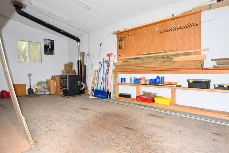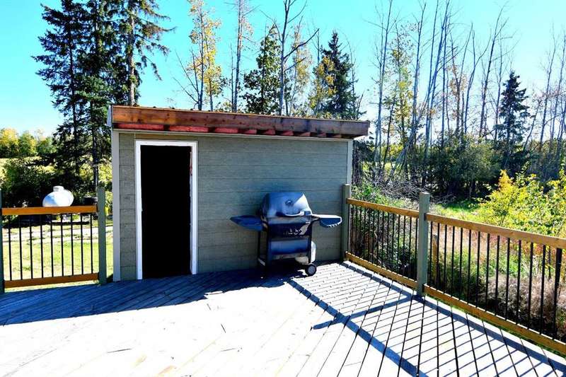 Pavement all the way to this small acreage with clean house and excellent quality outbuildings! The spacious bungalow has metal roof, large windows, and solid siding. It has 2 large bedrooms and 2 bathrooms. It has a spacious open concept kitchen, dining, living room with a wood burning fireplace that is a focal point of the room and multiple large east and south facing windows for a bright room. The kitchen has lots of cabinets with some built in features and designated spaces for an upright freezer and water cooler as well. Partial basement is clean and great for extra storage or could be further developed. Charming country curb appeal with the large solid wrap around decking. Just off the deck to the east is a good start on your very own outdoor sauna. There is an additional workshop/shed (12 x 25) with rolling and man door, has power and is heated with its own wood stove. The garage/shop (25 x 40) has cement floor, insulated, and heated. Situated on the outskirts of historic Markerville. This area is known for its charm! Walking distance to the Medicine River, the trails and bridges, community events for those needing social connection with an active community association with once a month potlucks, seasonal barbeques and celebrations, and the community lead Christmas Eve gathering at the historic church. There is a daily coffee club at the Creamery that runs every day year round. You can be part of a friendly rural community or lead a quiet private life (if that's what you prefer).