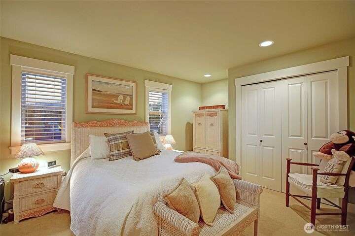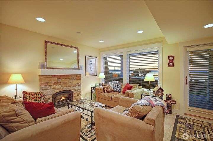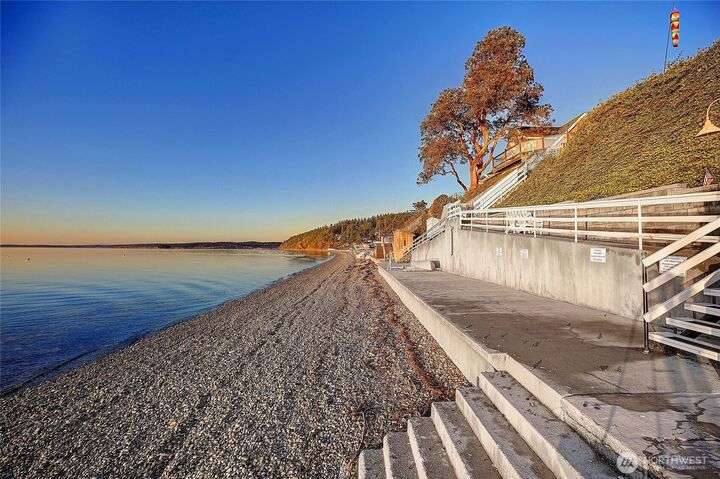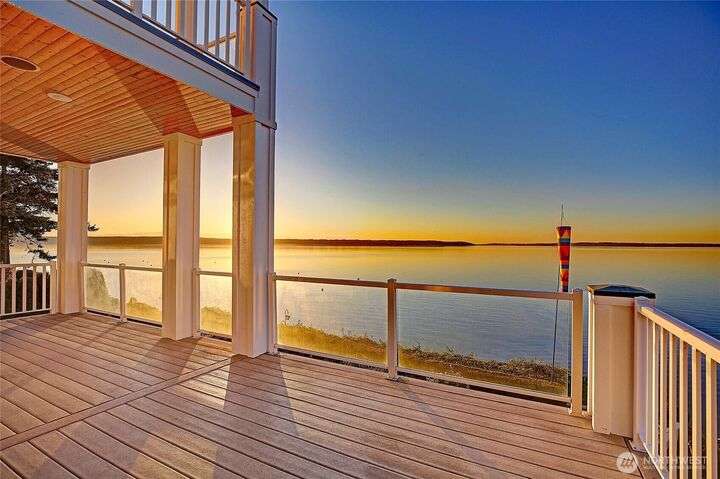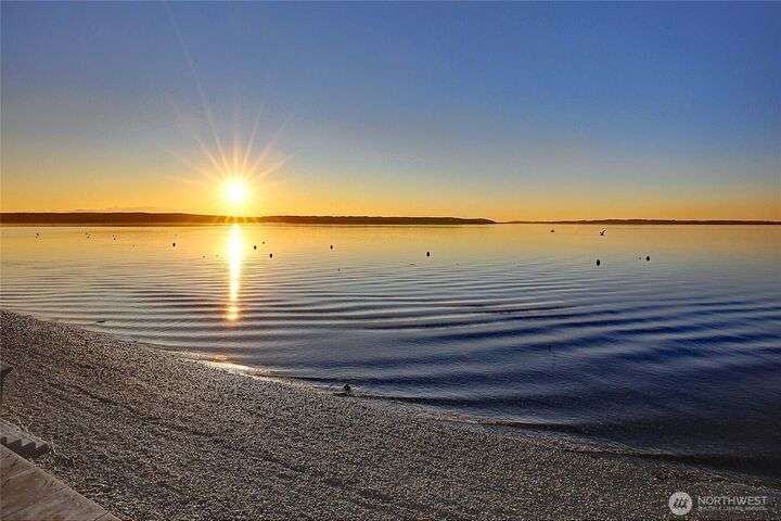 A rare find, this custom-designed home is strategically placed for maximum views and easy beach access. Upscale finishes and top quality throughout, complemented by impeccable maintenance, make this the perfect getaway. The main living area is open and spacious, beautiful kitchen with many quaint entertaining spaces. Plenty of room for all, the fully finished basement has its own living space and full kitchen. Expansive Western views include sunsets, boat traffic, wildlife activity, and a covered deck to enjoy it all. A newer concrete bulkhead offers room to entertain as well as easy access to the beach. 3-car garage with extra living or storage space above, mature and well-maintained landscaping with a gated entry. Captivating sunsets!