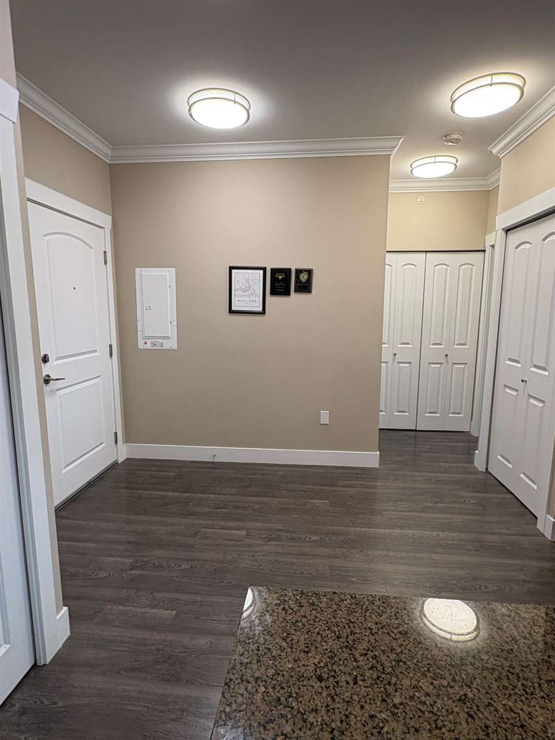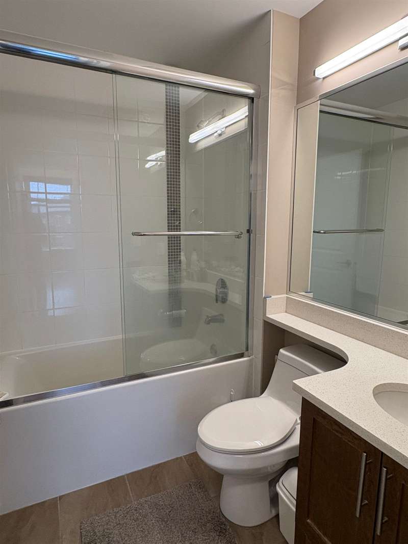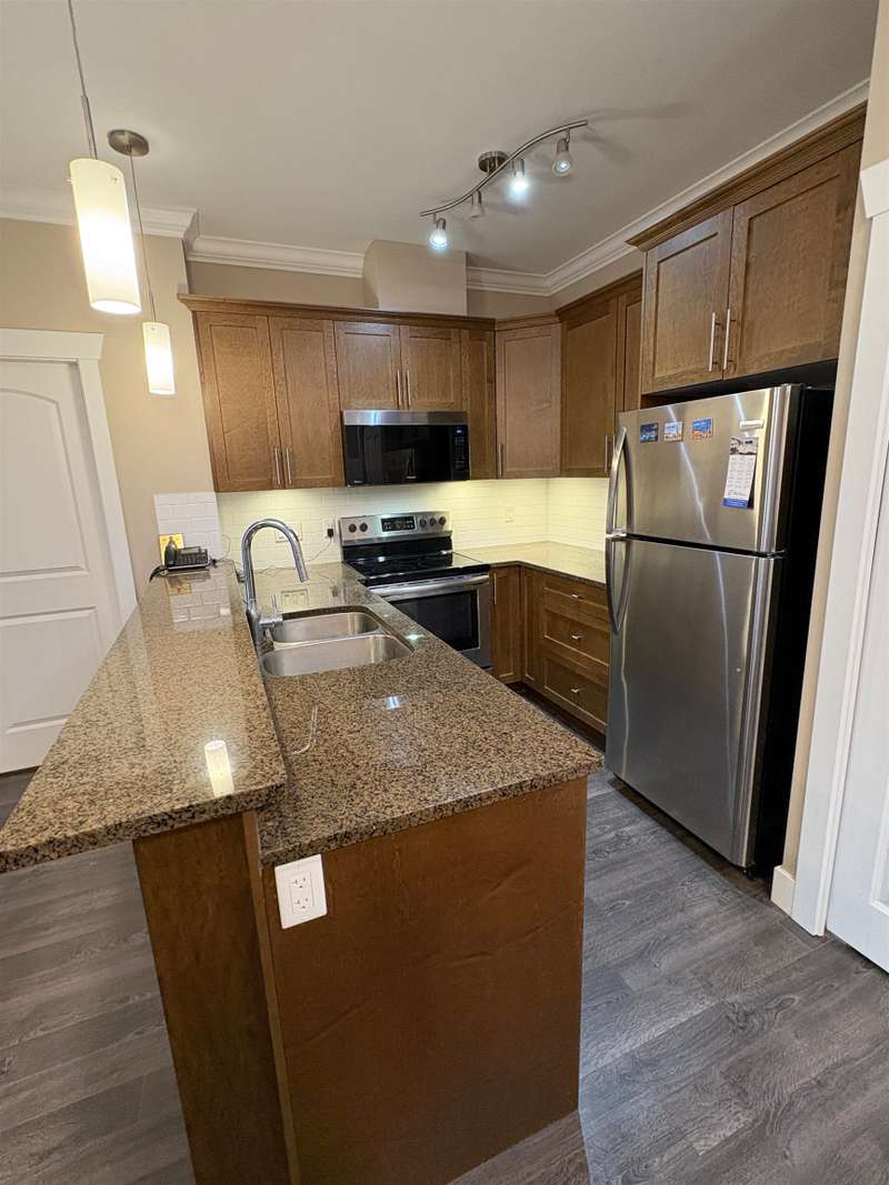 Welcome to the Celeste complex in Surrey! This prime location offers a beautiful 2-bedroom, 2-bathroom penthouse unit with a spacious open-concept design. The kitchen features quartz countertops, a breakfast bar, stainless steel appliances, and a stylish tile backsplash. Generously sized bedrooms and 9ft ceilings provide a spacious feel. New renovations completed in 2019. Enjoy your BBQ on the ample patio space. Includes 2 side-by-side parking spots and 1 storage locker. Building amenities include an exercise room, guest suite, clubhouse with kitchen, and courtyard. Close to schools, public transit, shopping, parks and more! Ideal for first-time buyers or those seeking to downsize. Measurements by Alpha One Creatives.