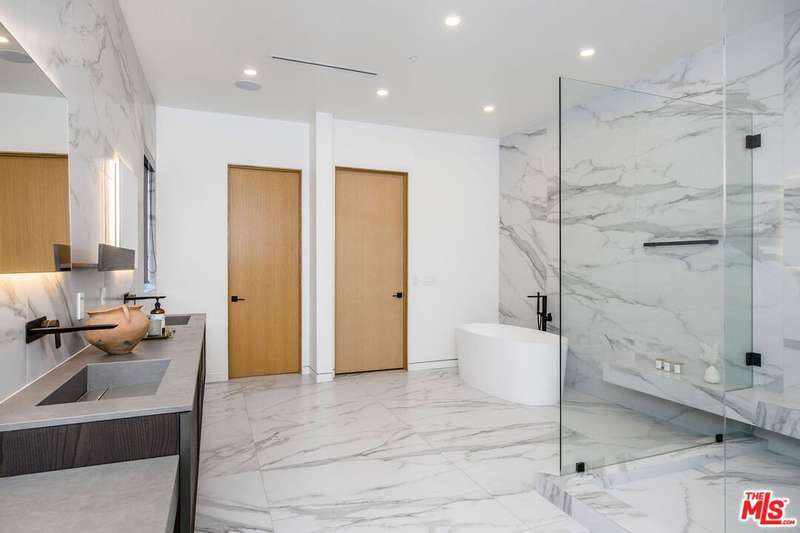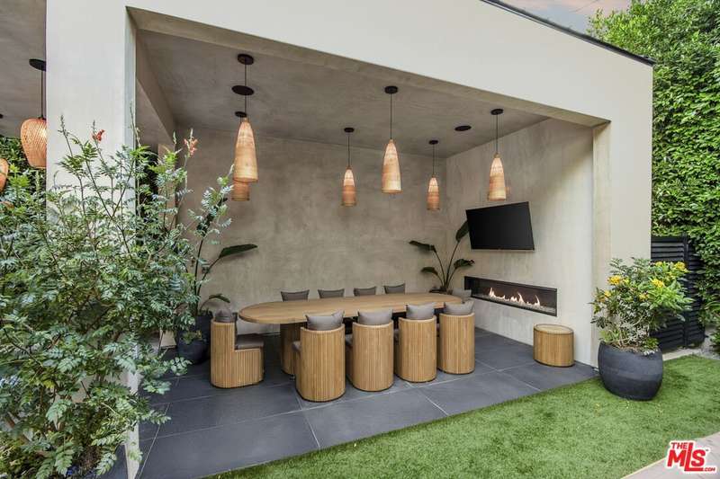 The Alfred residence is a masterpiece of organic contemporary design that balances indoor and outdoor living, located on one of the most coveted streets in West Hollywood. This home's expansive open-concept floor plan spans over 6,110 square feet on an oversized lot with 5 bedrooms, 5.5 bathrooms, an entertainer's backyard, a private movie theater, and 2-car garage. With 12-foot ceilings and floor-to-ceiling windows, natural light pours into every room. Open the living room's custom sliding glass pocket doors to blur the transition between indoor and outdoor when entertaining friends and family. The backyard evokes the beauty of Tulum, with tall and lush hedges providing serene privacy. The covered lime-wash outdoor lounge area includes an integrated sound system, designer pendant lighting, fireplace, and flat-screen TV, creating the ideal space for alfresco dining and entertainment. Spend your evenings preparing dinner in the kitchen while you watch the sunset pour in over stunning views of the backyard, pool, & waterfall. The custom-designed kitchen comes equipped with a massive oversized marble island, two dishwashers, two ovens, a walk-in pantry, and a full suite of Miele appliances including an in-wall fully automatic espresso machine. Moving upstairs, the Alfred's palatial double-sized primary suite is a true sanctuary, featuring a private balcony with floor-to-ceiling sliding glass doors overlooking the backyard, a luxurious walk-in closet, and cozy fireplace. The spa-inspired bathroom is outfitted with oversized marble slabs, a freestanding soaking tub, a frameless glass shower, a vanity, his and hers sinks, and a Toto toilet. The junior suite is comprised of a bedroom and en-suite, each with its own dedicated full bathroom, and a balcony overlooking tree-lined Alfred Street. This unique configuration offers ultimate practicality, with the en-suite being used as an office, den, creative space, playroom, or bedroom. Back downstairs, the Alfred's dedicated home theater is equipped with a cinematic projector and surround sound - subwoofer included - providing the ultimate at home entertainment experience. Additional amenities include, Control4 smart home system controlling lights, speakers, climate, and security, Motorized blackout roller blinds in all bedrooms, controllable via mobile app, Pool and spa heaters controllable via mobile app, Commercial grade wifi mesh network, Front door ring camera and 9-camera security surveillance system with remote live feed access and 24/7 recording to a local secure hard drive. Downstairs: living room, dining room, kitchen, movie theater, office, guest bathroom. Upstairs: primary suite, junior suite and en-suite, guest suite & laundry room. With this home's amazing location, you can easily walk to anything you need. Sushi Fumi, Urth Cafe, Great White Melrose, Alfred Coffee, Melrose Place, the Beverly Center, the list goes on and on. Get out and enjoy the beautiful California weather every day, year round.