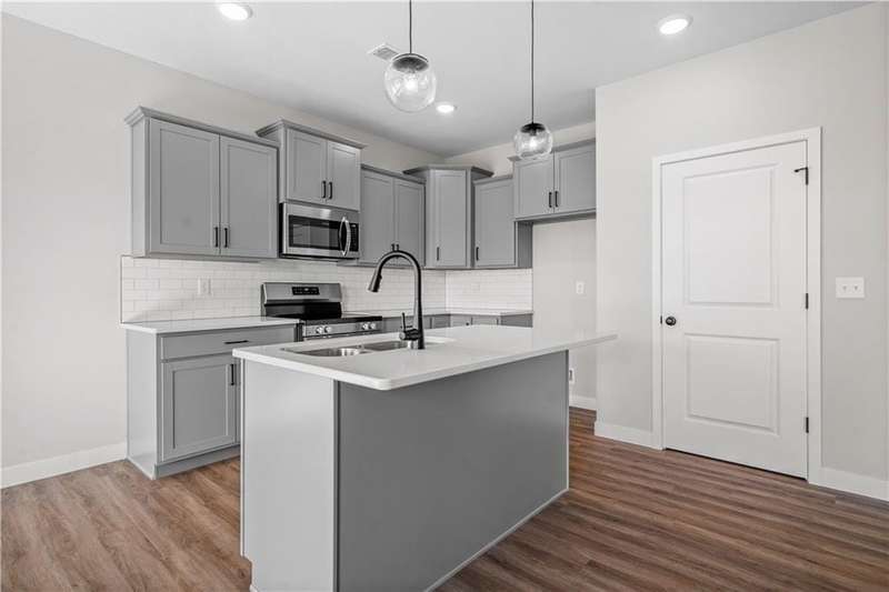 MOVE IN READY! PREMIUM LOT BACKING TO GREENSPACE & POND! This stunning home is perfectly positioned on a picturesque lot with tranquil views, offering both luxury and low-maintenance living.Featuring luxury vinyl plank (LVP) flooring throughout most of the main living areas, this home blends style and durability. The gourmet kitchen and all bathrooms are finished with elegant quartz countertops, providing a clean, upscale aesthetic throughout.The walkout basement with 9-foot ceilings offers incredible potential for future expansion. Enjoy outdoor living on the maintenance-free deck or relax on the lower-level patio while taking in peaceful views of the pond and surrounding greenspace.Designed for convenience and longevity, the homes exterior features maintenance-free siding and decking. Located in a highly sought-after community with an A+ school district and easy access to shopping, dining, and major highways.Photos are simulated. Floor plans and finishes may vary.