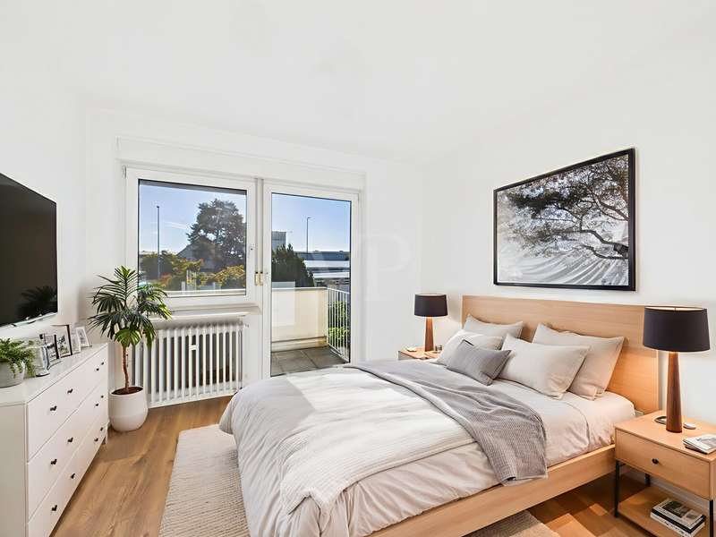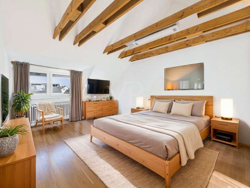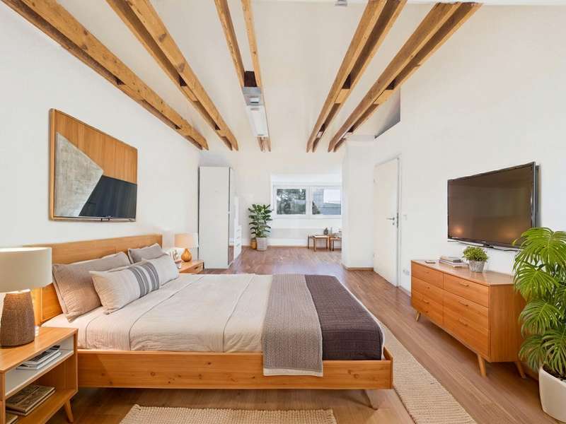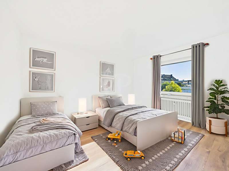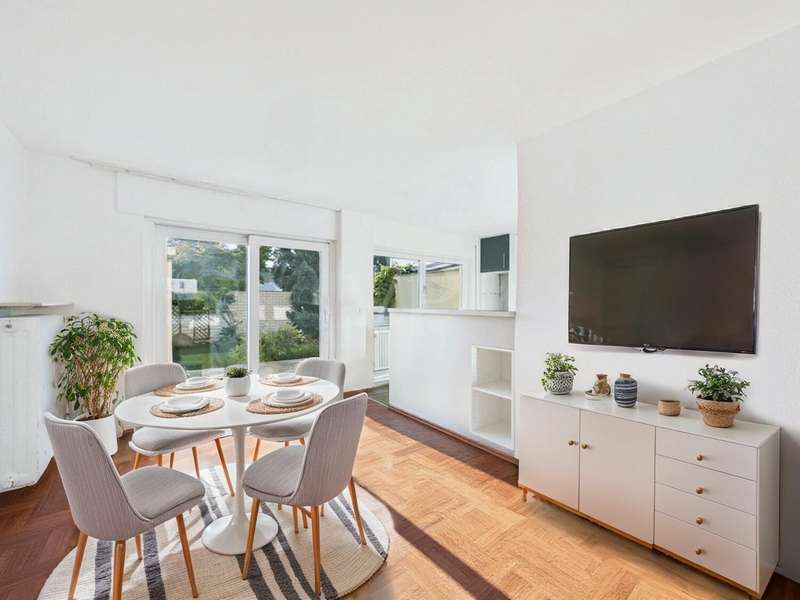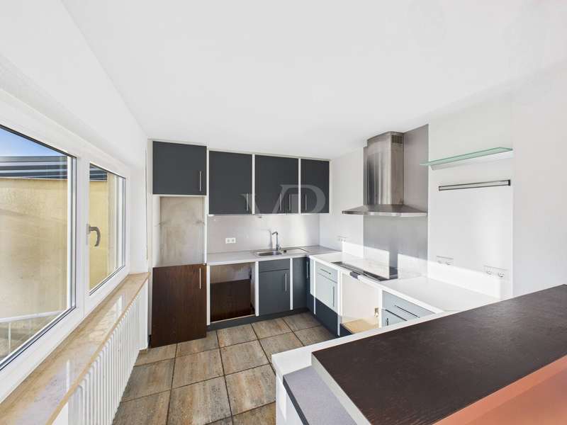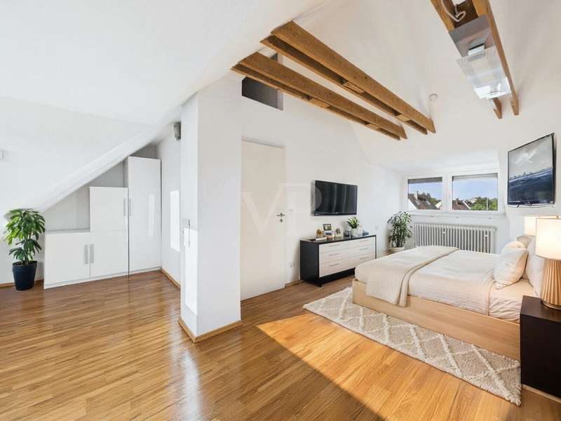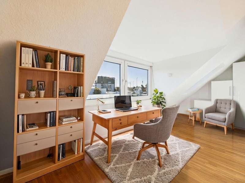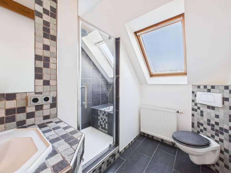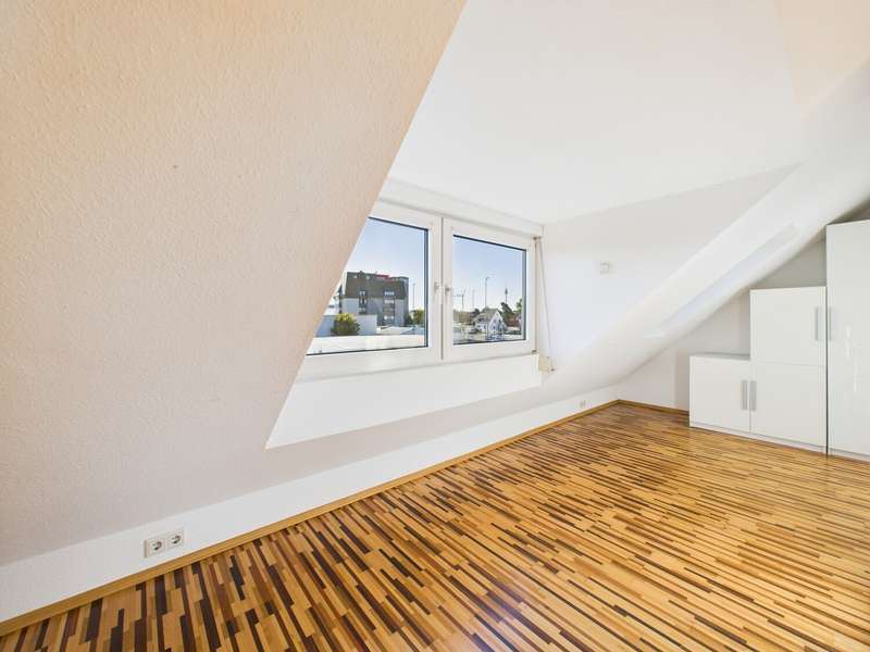 This charming mid-terrace house impresses with its well thought-out room layout and offers approx. 127 m² of living space on a plot of around 183 m², making it ideal for couples or small families. On the first floor, you are welcomed by an open-plan living, dining and kitchen area, which is flooded with light thanks to large windows and offers direct access to the terrace and garden - ideal for enjoying relaxing evenings outdoors or watching your children run around. A practical guest WC completes this level. Three bright and generously proportioned bedrooms and a modern daylight bathroom await you on the upper floor. Every member of the family will find their own personal retreat here. The adjoining balcony invites you to enjoy the first rays of sunshine of the day or to end the day in peace in the evening. The top floor impresses with a spacious studio and its own shower room and offers a variety of uses: Whether as a stylish parents' area, a comfortable teenager's room or a quiet home office - the rooms can be flexibly arranged to suit your needs. The house has a full basement and offers a variety of uses in several rooms. The heating system, which was replaced in 2023, is housed in a practical utility room, which can be used in a variety of ways thanks to the washing machine connection - whether for laundry, supplies or as additional storage space.