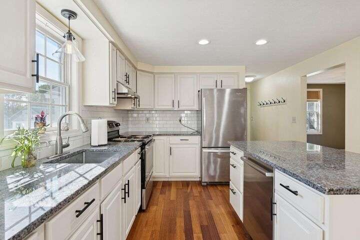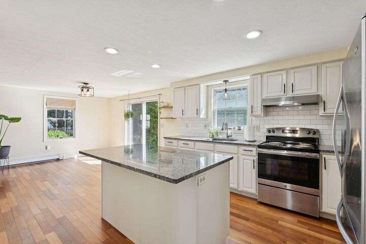Tucked away on a quiet cul-de-sac, this 3-bedroom, 1.5-bathroom home offers the perfect blend of space, comfort, and convenience for today's lifestyle. With 1,876 square feet of living space, which includes a finished basement bonus room, there's plenty of room to spread out, entertain, and enjoy everyday living. Recent updates include a new roof and boiler—making this truly a move-in ready home. Inside, the heart of the home is the updated kitchen featuring granite countertops, stainless steel appliances, and a center island that's perfect for family meals or casual gatherings. The kitchen opens to a large front-to-back living room with sliders that lead to a private back patio, ideal for summer barbecues or quiet evenings outdoors. A formal dining room provides the perfect spot for holidays and special occasions. Upstairs, the spacious primary bedroom is a comfortable retreat, while two additional bedrooms provide flexibility for family, guests, or a home office. A finished room in the basement adds even more possibilities—whether you need a playroom, media room, or workout space. Beautiful Brazilian Cherry hardwood floors run throughout the home, adding warmth and character. Outside, enjoy the fenced-in yard and attached two car garage. Located just minutes from Portland's shopping, dining, schools, and commuter routes, this home combines the ease of a well-established neighborhood with access to everything the city has to enjoy.