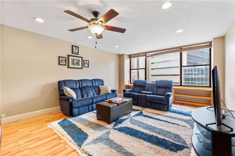 This is unlike no other condominium in Chatham Towers! This one is a knock out! Custom designed renovation opened the kitchen to the living/dining room, upscale finishes include granite counters, wood cabinets, & stainless steel appliances. The primary bath adds luxury with a step up corner shower with a connecting in-unit laundry with a stacked washer & dryer. Huge Primary bedroom features generous closets. Ideally located near PPG Paints Arena, Duquesne Univ, UPMC, and AHN. This residence offers both convenience & prime access to all the best the city has to offer, perfect for those who enjoy the vibrant energy of the Cultural District & nearby event venues. Whether you're a busy professional, a college student, or a downtown employee, this condominium apartment will appeal to all. Garage parking is also available for an additional monthly fee. Move in ready, Welcome Home! Don't miss the chance to make this exceptional condo your home in the heart of Pittsburgh.
