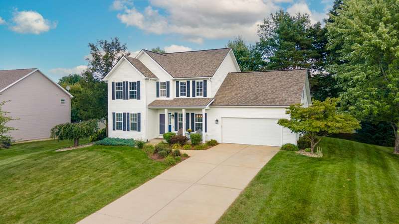 Discover the perfect blend of comfort, updates, and lifestyle in this 4-bedroom, 2.5-bath traditional 2-story home located in the award-winning Mattawan School District. The main level features a spacious living room with a gas log fireplace, a formal dining room, and a private office, all enhanced by new LVP flooring (2024). The kitchen and dining area open to an expansive composite deck overlooking a backyard with mature shade trees, firepit, and 10x12 shed. Upstairs, all bedrooms feature cork flooring, highlighted by a primary suite with soaking tub, walk-in closet, and full bath. The daylight lower level expands your living space with a family room (new carpet) and is plumbed for a future bath. A 2.5-car garage offers extra room for storage, tools, or hobbies. Just minutes from Texas Corners farmers market, many locally owned restaurants, and less than 30 minutes to downtown Kalamazoo. No HOA fees! Major updates include roof (2020), furnace, A/C, and water heater (2024).
