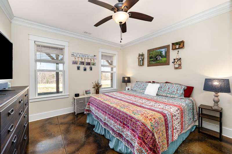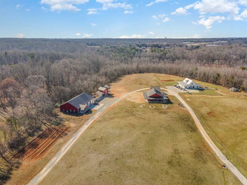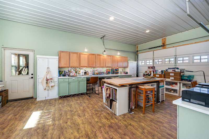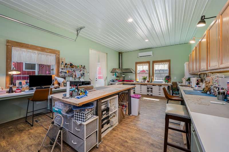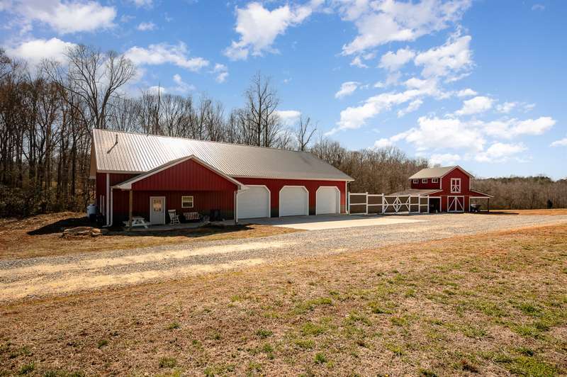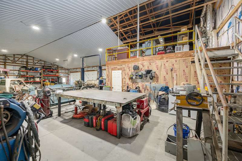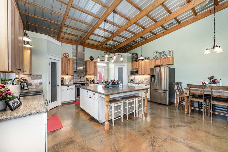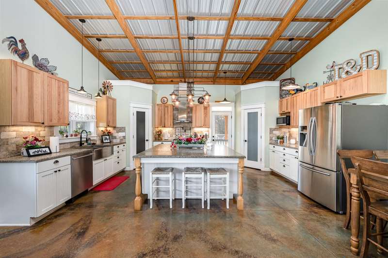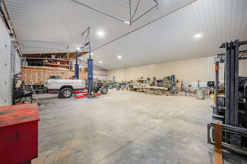 Nestled on 10acres yet close to downtown Mooresville. Breezy open spaces, 9-foot ceilings, and distinctive custom touches throughout. Gourmet kitchen with custom concrete countertop inlaid with glass, stained concrete floors. Striking stone fireplace in the great room. The spacious hobby/craft room is perfect for creating. Those needing serious workspace, the 4,000 sq. ft. shop is an absolute dream! Complete with an office that could double as a studio apt, fully equipped with 3-phase inverter & 110 receptacle wiring, Multiple outlets for welding/machinery, Fully plumbed for compressed air, plus an Ingersoll Rand 80-gallon air compressor, Three 12'x10' roll-up doors, 15' eave height, and a vaulted ceiling with a 21' center height, 1,500-lb hydraulic 2-post lift. Walk through the woods to your private retreat. 532 sq. ft. off-grid oasis powered by solar backup, heated by woodstove, with kitchen, great room, and sleeping loft. See attached list for more! Eligible to be annexed to MGSD.