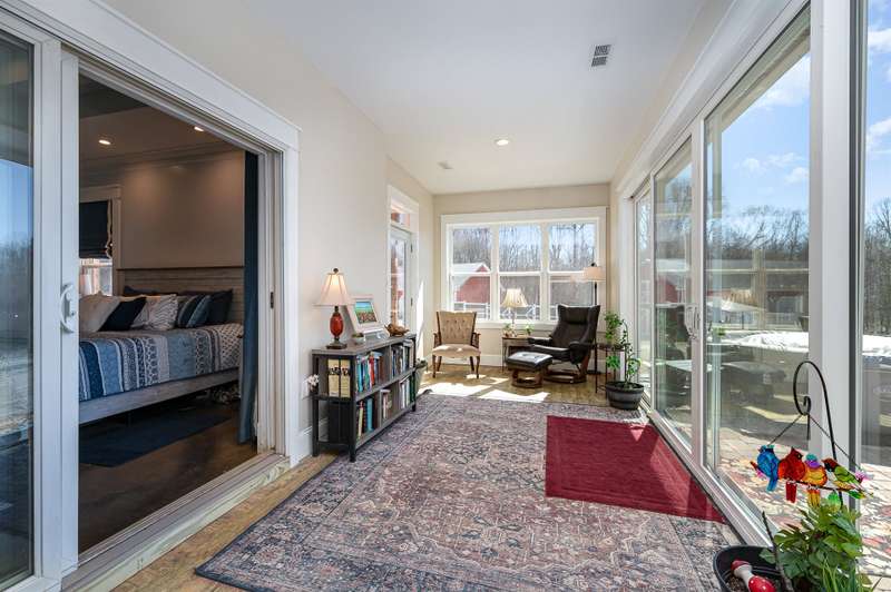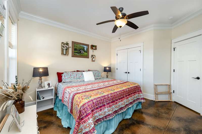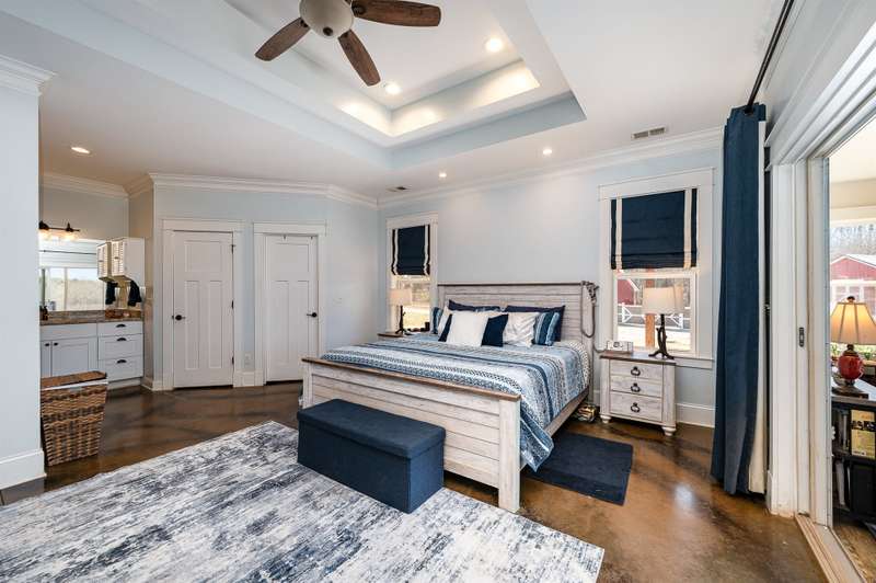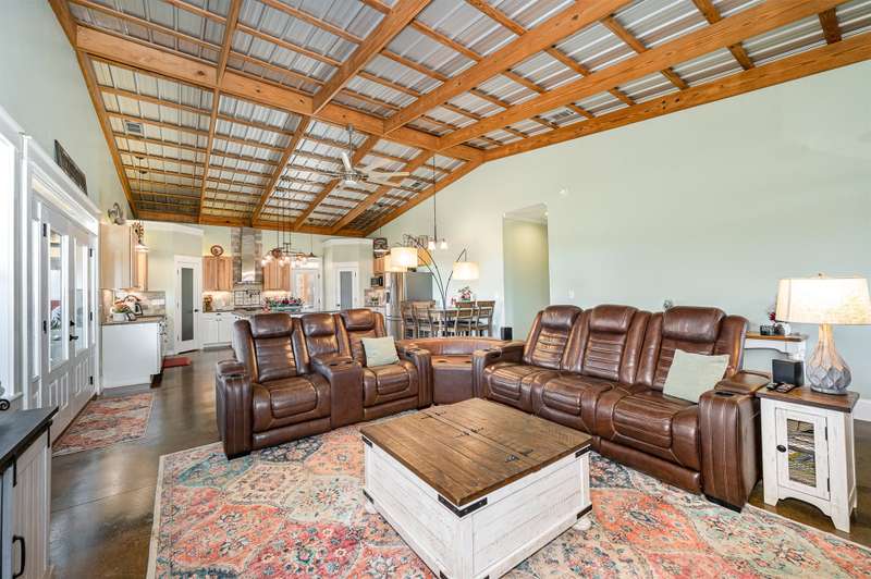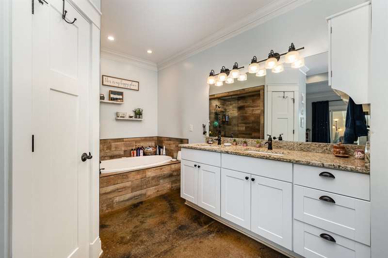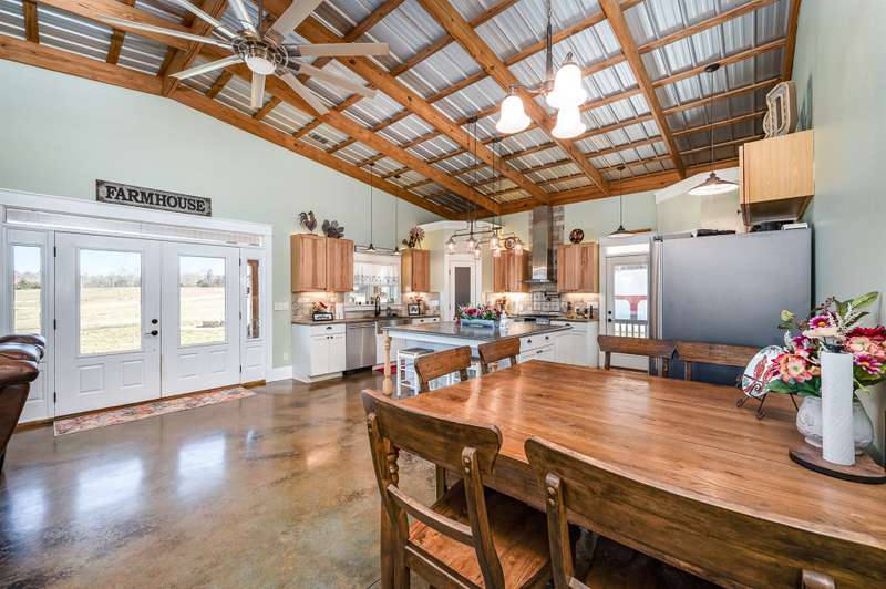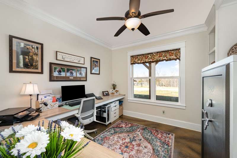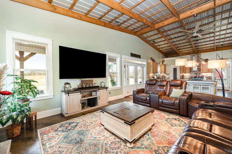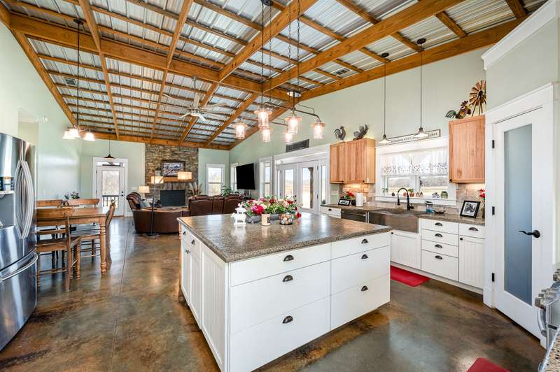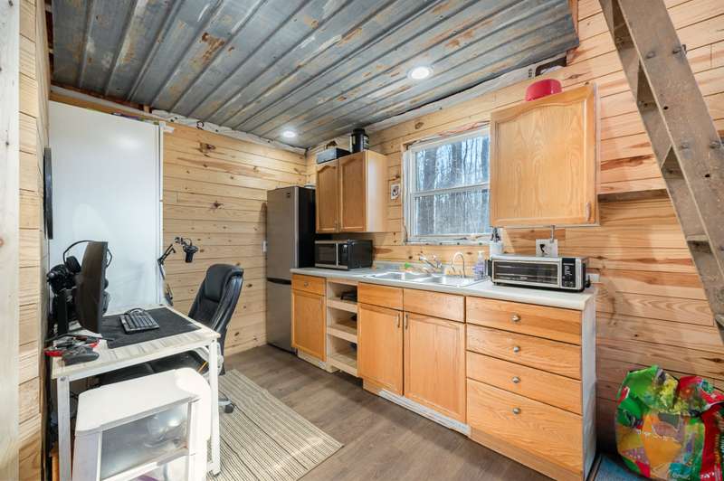 Nestled on 10acres yet close to downtown Mooresville. Breezy open spaces, 9-foot ceilings, and distinctive custom touches throughout. Gourmet kitchen with custom concrete countertop inlaid with glass, stained concrete floors. Striking stone fireplace in the great room. The spacious hobby/craft room is perfect for creating. Those needing serious workspace, the 4,000 sq. ft. shop is an absolute dream! Complete with an office that could double as a studio apt, fully equipped with 3-phase inverter & 110 receptacle wiring, Multiple outlets for welding/machinery, Fully plumbed for compressed air, plus an Ingersoll Rand 80-gallon air compressor, Three 12'x10' roll-up doors, 15' eave height, and a vaulted ceiling with a 21' center height, 1,500-lb hydraulic 2-post lift. Walk through the woods to your private retreat. 532 sq. ft. off-grid oasis powered by solar backup, heated by woodstove, with kitchen, great room, and sleeping loft. See attached list for more! Eligible to be annexed to MGSD.