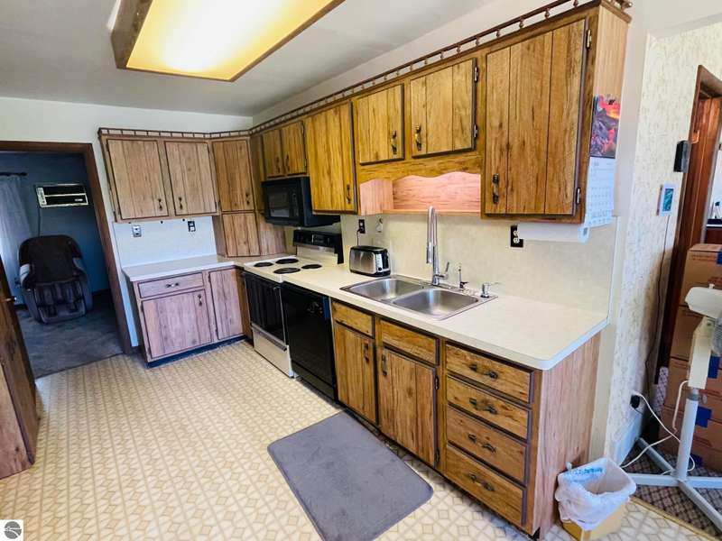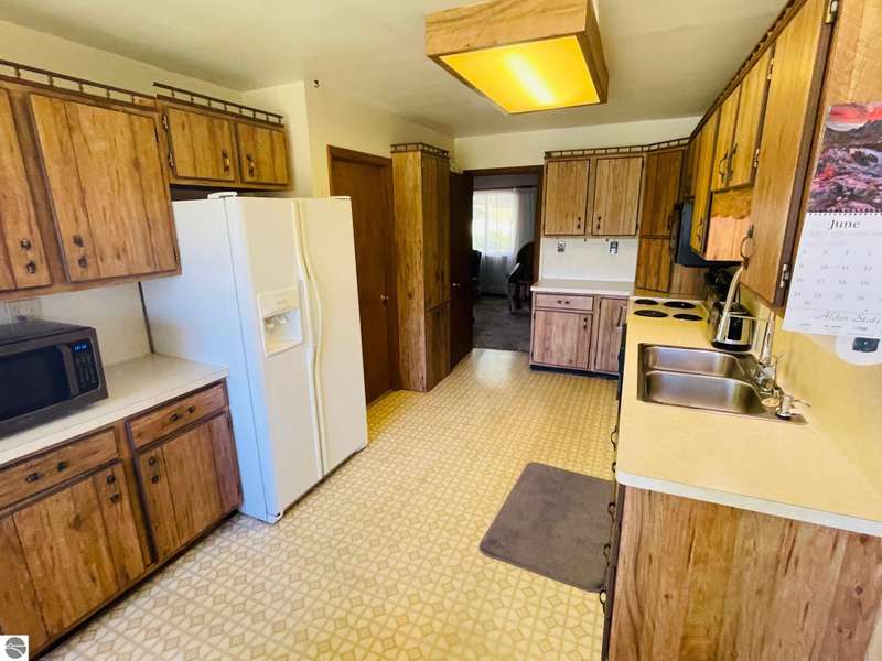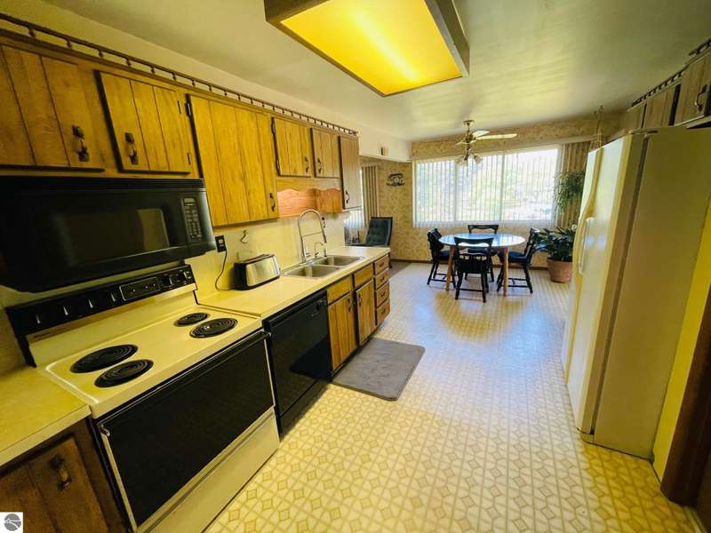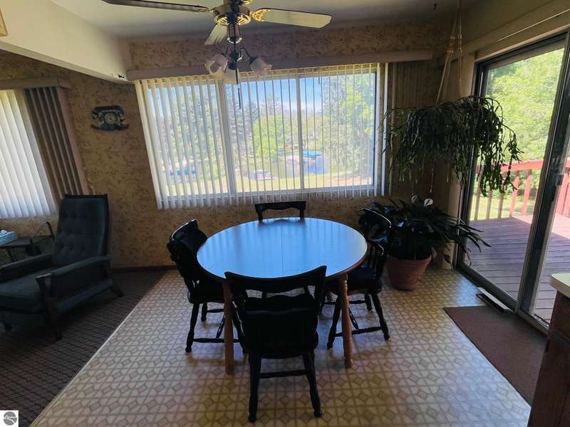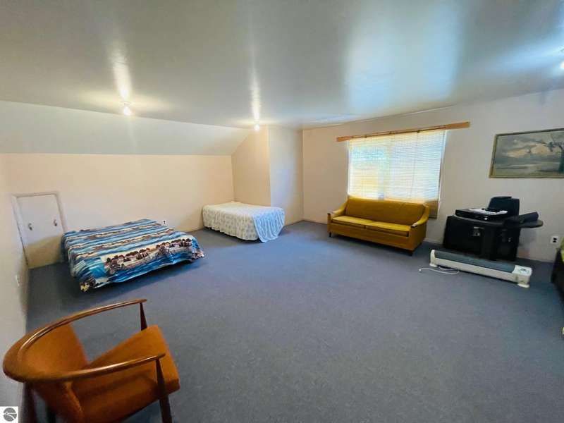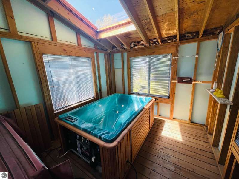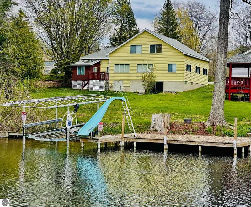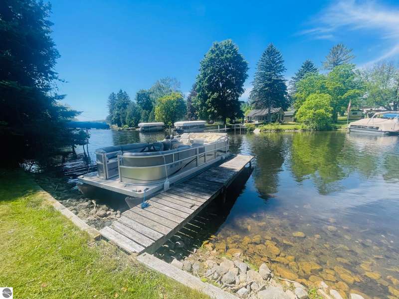 Spacious direct Intermediate River waterfront home located in charming Village of Central Lake. Great location with this deep manicured lot to perma dock giving you boatable access to the amazing Northern Chain of Lakes including spectacular Intermediate Lake which is only a couple hundred feet away under bridge. This home may be dated but is in solid condition and has so much to offer w/newer roof & heating system, three Season room w/hot tub, waterside deck, huge 700 sq foot bonus room in upper level currently used as overflow bedroom, large upper level closet set up to be additional bath, den, partial unfinished walkout basement w/laundry & 1/2 bath already installed, covered front porch, large laundry room, attached 2 car garage plus additional 40x40 pole barn with cement floor & electric. All within walking distance to sandy lakefront park and downtown Central Lake with all it has to offer.