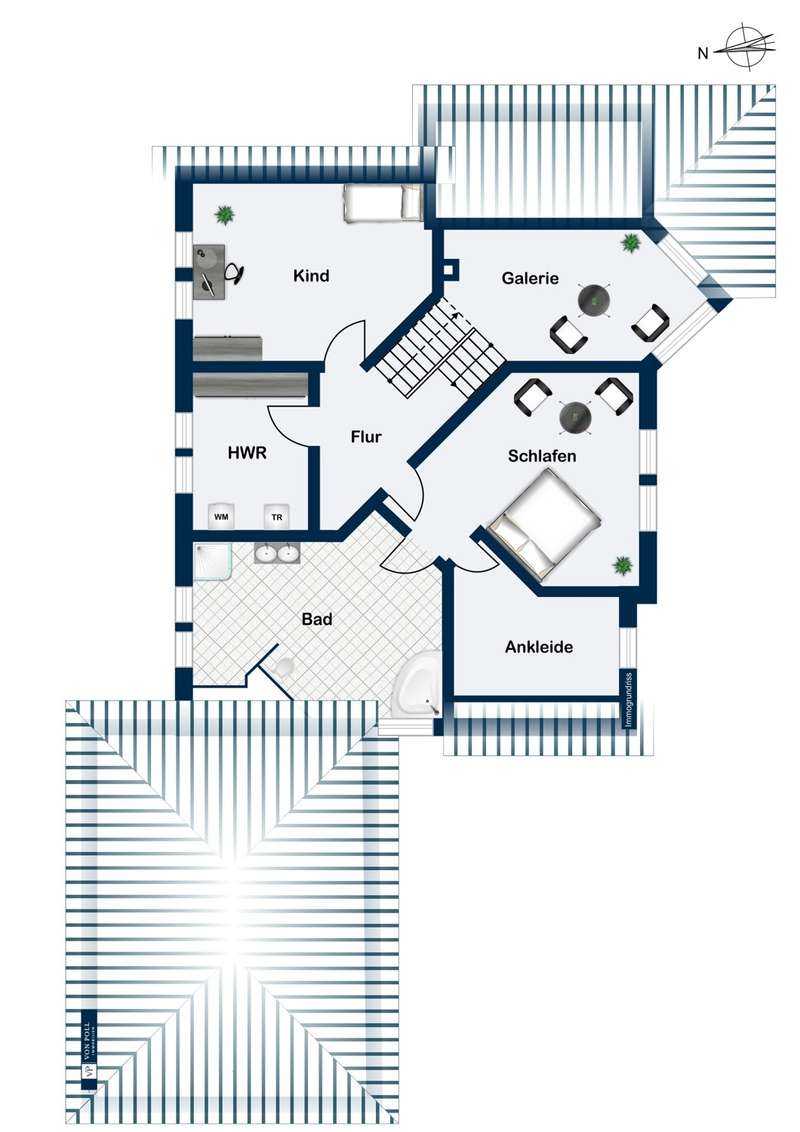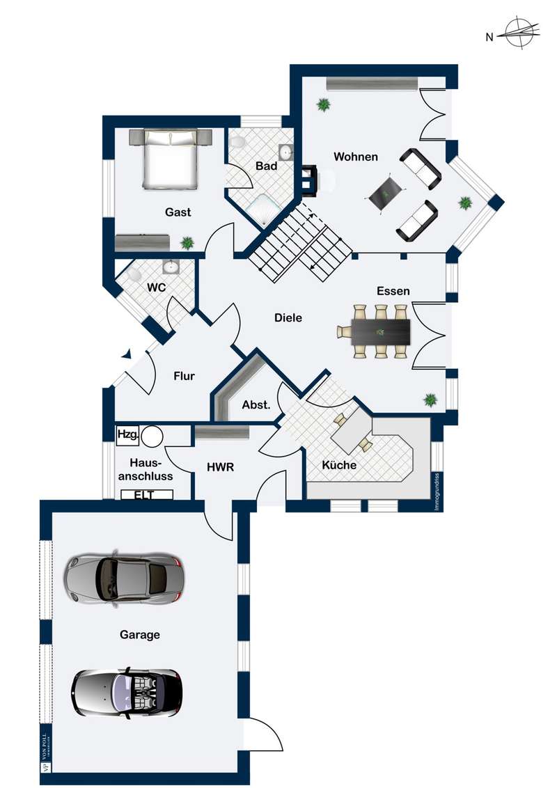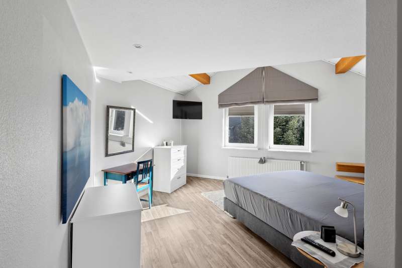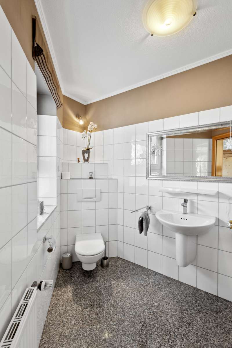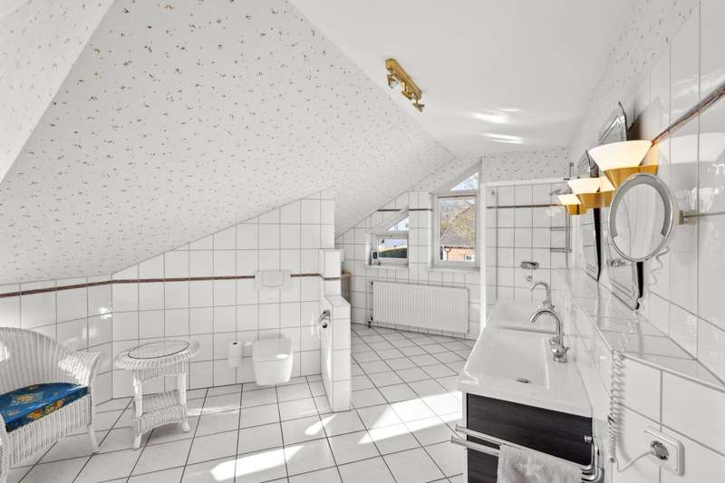 This spacious architect-designed house with high-quality furnishings was individually planned and built in 1997 on a plot of approx. 950 m² that is hidden from view. The property impresses with a living area of approx. 194 m² and an additional usable area of approx. 24 m², spread over three levels. The well thought-out architecture and the use of high-quality materials create an exclusive living ambience. At the heart of the house is the light-flooded living and dining area with floor-to-ceiling windows that allow optimal orientation to the east, south and west. The elegant interior design extends over two levels and ensures an exceptional living experience. The spacious, covered south-facing terrace and the adjoining west-facing terrace invite you to linger outdoors. The kitchen offers direct access to the adjoining pantry and utility room and also has a separate exit to the west-facing terrace. There is also direct access into the house from the double garage, which provides extra convenience in everyday life. The high-quality interior impresses with fine materials such as white marble, granite and modern vinyl flooring. The brightly designed bathrooms, a separate dressing room, a separate guest area and a wellness area underline the upscale living comfort. Underfloor heating provides pleasant warmth, while the wood-burning stove also ensures a cozy atmosphere on cooler days. Future-oriented technology rounds off the offer: a solar system, a cistern for sustainable water use and many other well thought-out details make this property a special home. Enjoy stylish living in a quiet cul-de-sac location with optimal southern exposure and excellent infrastructure.