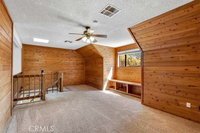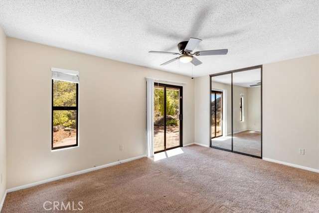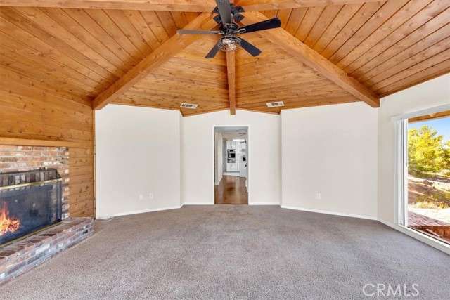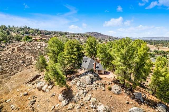 Hilltop Hideaway with Panoramic Views Surrounded by nearly two acres of mature trees and dramatic natural boulders, this private retreat offers 360-degree views of rolling hills, distant mountains, and breathtaking sunrises and sunsets. Nestled in the sought-after Lake Crest Estates area, an enclave of custom homes on large lots, the property is reached by a long, gently winding driveway that sets the scene for peaceful seclusion. Inside, the single-level, 4-bedroom, 2-bath residence exudes a warm cabin in the woods ambiance. A large family room with raised, wood-beamed ceilings and a brick fireplace creates a cozy focal point for gatherings. Natural light streams in through skylights, enhancing the open, airy feel. Practical amenities abound: leased solar panels, plentiful RV and guest parking for six or more vehicles, and a separate tool shed or workshop for hobbies or storage. This Hilltop Hideaway is ideal for anyone seeking serenity, nature, and inspiring vistas all while remaining part of a welcoming, upscale neighborhood.