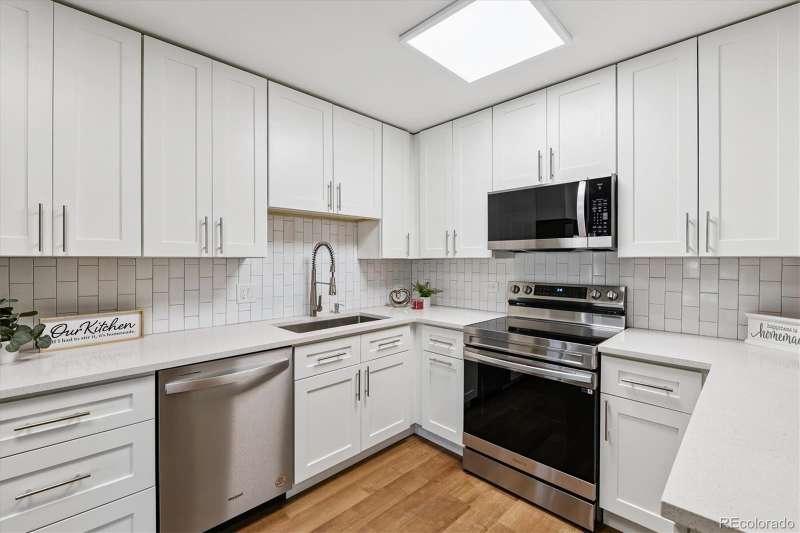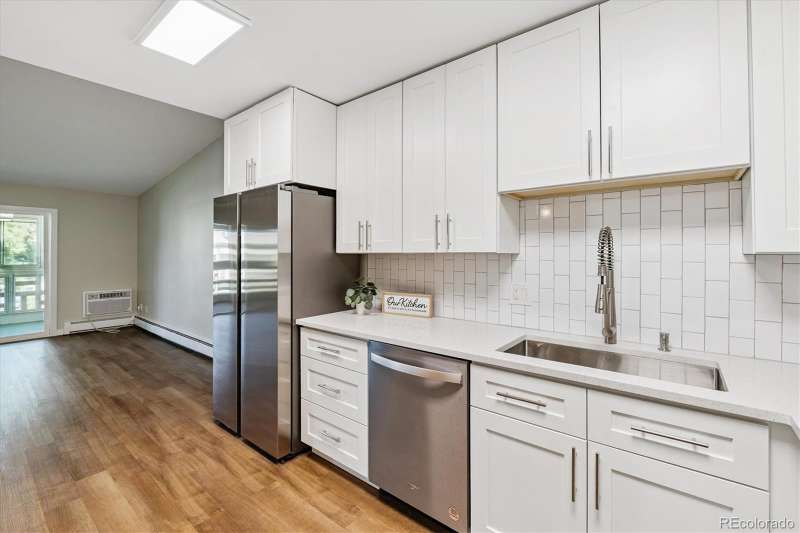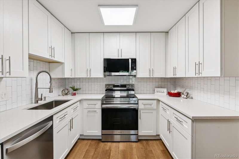 *New Remodel w/underground parking! Conveniently located across from clubhouse & all the amenities- condo on back side facing courtyard. This condo is a penthouse 1200sf, 2 bed/2 bath, plus bonus multi-purpose room for storage or mini- office/hobby room. Vaulted ceilings create a very spacious and airy environment. Kitchen features white shaker soft close cabinets, white tile backsplash, quartz countertops, & new lights and fixtures. All stainless appliances are NEW! Spacious Primary Bedroom features large walk-in closet & en-suite 3/4 bath. Both bathrooms remodeled w/new vanity's, quartz tops, new sink/faucet & fixtures, & updated tile surrounds. Vinyl flooring thru-out entire unit- no carpet! Also include: 2 new digital wall ac units. Glass/Screen enclosed lanai & New vinyl slider door. Bonus storage room in building on same floor as condo. You will enjoy seeing this one!**Windsor Gardens is Colorado's Largest Age 55+ Active Adult Living Condo Community. Did you know? Monthly HOA Dues include annual property taxes! And heat, water, sewer, trash, round-the-clock patrolling community responders, full time onsite association management, grounds/building maintenance, and activities department. Enjoy clubhouse amenities such as fitness center, indoor/outdoor pools, hot tub, sauna, billiards, library, craft rooms for ceramics, sewing, woodworking, and 9 hole par 3 golf course and onsite restaurant both open to the public. Stay engaged with a wide array of activities, clubs, and events scheduled every month. Additional features include garden plot program, private walking trail and nature preserve, and RV/Boat storage. The Highline Canal runs full length along south side of the complex. RTD Bus Stops located thru-out the community. FHA/VA approved. Close to restaurants, stores, shopping…Minutes to Lowry, Hwy 225, Cherry Creek…Easy access to DIA and downtown. Come see for yourself what Windsor Gardens has to offer. 2021**