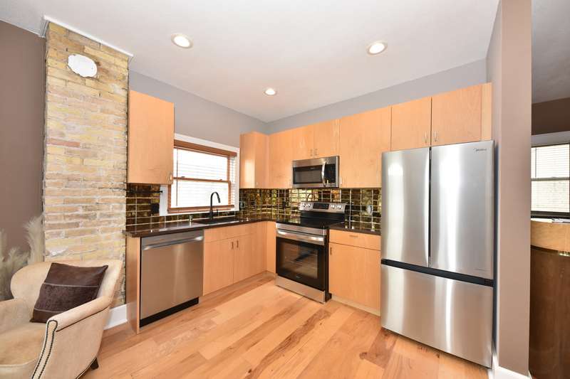 Updated character filled downtown adjacent loft space. Available for immediate occupancy. Open concept living room and kitchen with appliances included. Dining space, and additional office space or second bedroom. Newer wood plank flooring throughout. Updated bathroom with tile floor and washer/dryer combo unit. Private access, walkable location, call today.