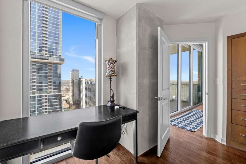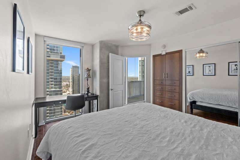Perched on the 28th floor of 360 Condos, 360 Nueces Street #2808 offers a stylish and contemporary 1-bedroom, 1-bathroom residence in the heart of downtown Austin. Floor-to-ceiling windows showcase stunning skyline views, while an open-concept layout enhances the sense of space. The modern kitchen features sleek cabinetry, stainless steel appliances, and granite countertops. Residents of 360 Condos enjoy premier amenities, including a resort-style pool with sundeck, a state-of-the-art fitness center, a clubroom for entertaining, and 24/7 concierge service. With a prime location just steps from the vibrant Seaholm District, Lady Bird Lake trails, and Austin's best dining and entertainment, this high-rise retreat offers the ultimate urban lifestyle.