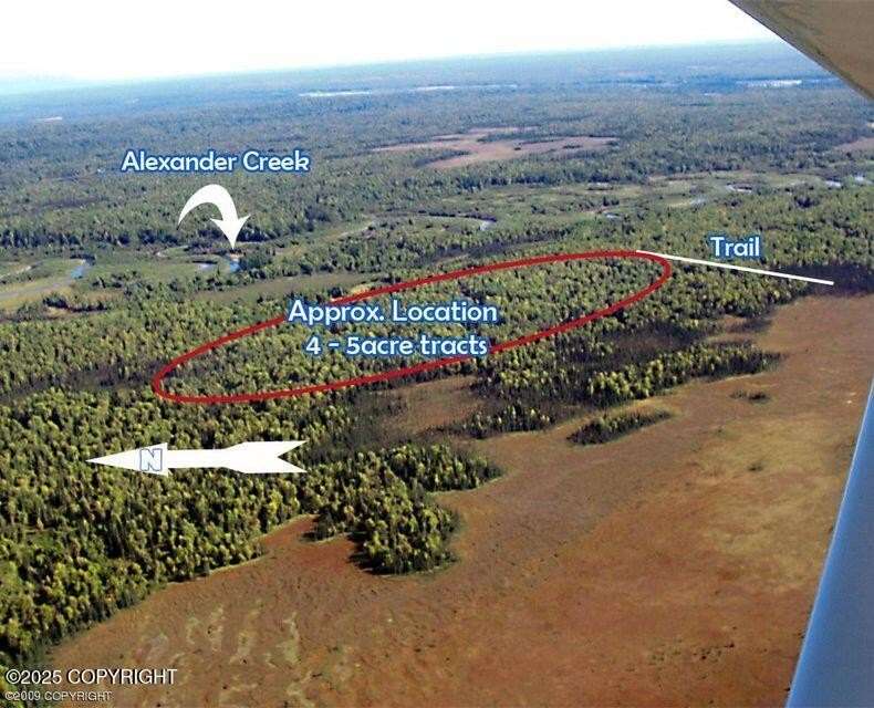 5 acres of high and dry bluff just west of Alexander Creek and the Iditarod Trail. Large trees, lots of trails, wildlife, fishing, bears, remote recreation. 4 adjoining 5-ac parcels available. Buy one or buy all for the ultimate retreat! Platted roads & runway to south.
